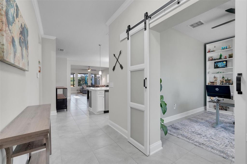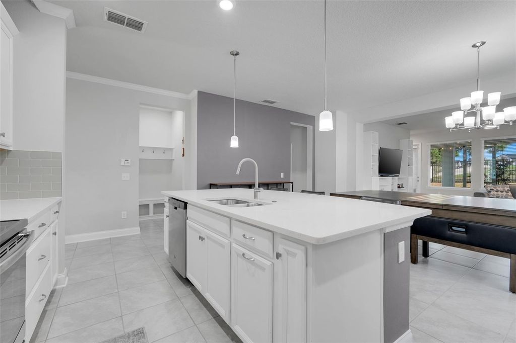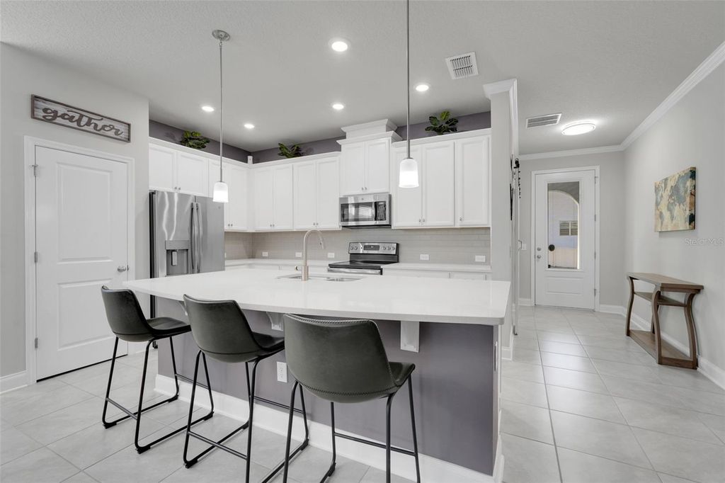 Under contract-accepting backup offers. One or more photo(s) has been virtually staged. Welcome to this beautifully maintained home in the highly desirable John's Lake Landing community in Clermont. Built in 2018 and practically like new, this home offers 3 bedrooms, 2 bathrooms, and a dedicated office/den, providing the perfect blend of functionality and comfort for today's lifestyle. Inside, the open-concept layout creates a bright and inviting atmosphere, featuring tile flooring throughout the entire home "” NO CARPET "” along with QUARTZ COUNTERTOPS, STAINLESS STEEL APPLIANCES, upgraded lighting, and stylish finishes throughout. The kitchen flows seamlessly into the living and dining spaces, making it ideal for both everyday living and entertaining. The spacious primary suite features a tray ceiling, a massive walk-in closet, and an upgraded en-suite bathroom with a walk-in shower and elevated finishes throughout, creating a relaxing private retreat. Step outside to enjoy the screened-in lanai overlooking a private backyard with NO REAR NEIGHBORS, offering a peaceful space for morning coffee, outdoor dining, or relaxing evenings. Just moments from the home, residents enjoy access to the community's resort-style pool, playground, and vibrant neighborhood atmosphere, with regular events such as block parties, First Friday gatherings, and movie nights by the pool. John's Lake Landing is one of Clermont's most sought-after communities thanks to its welcoming vibe and prime location near Florida's Turnpike, major highways, shopping, dining, and the area's growing collection of restaurants and everyday conveniences. Located approximately 15 minutes from the Plant Street Market in historic Winter Garden, a popular destination known for artisan eateries, breweries, and specialty shops "” plus about 25 minutes to Disney, 30 minutes to Orlando International Airport, and roughly 1.5 hours to both Florida coasts.