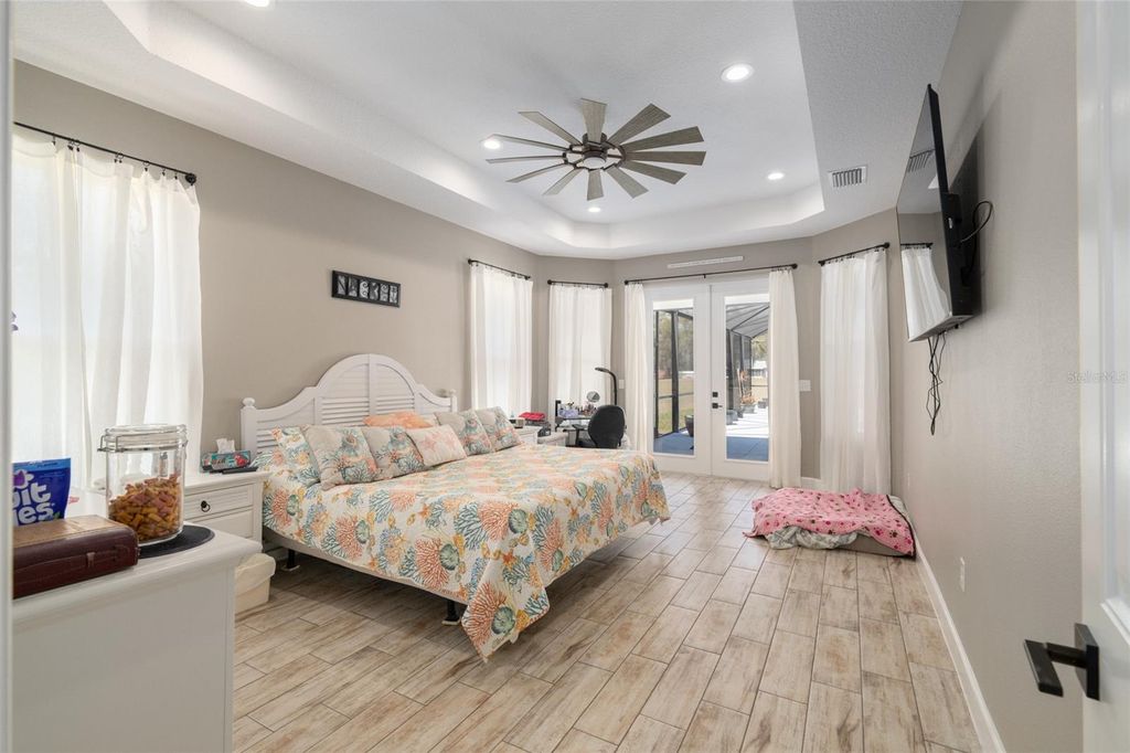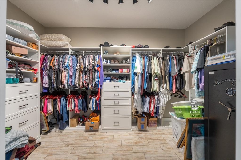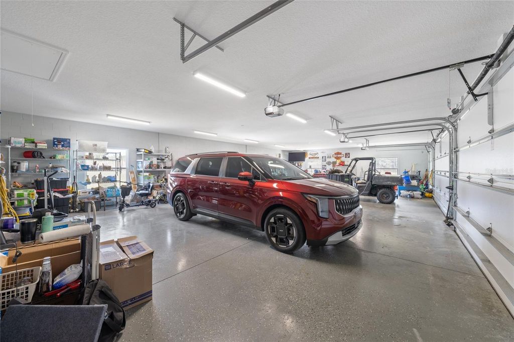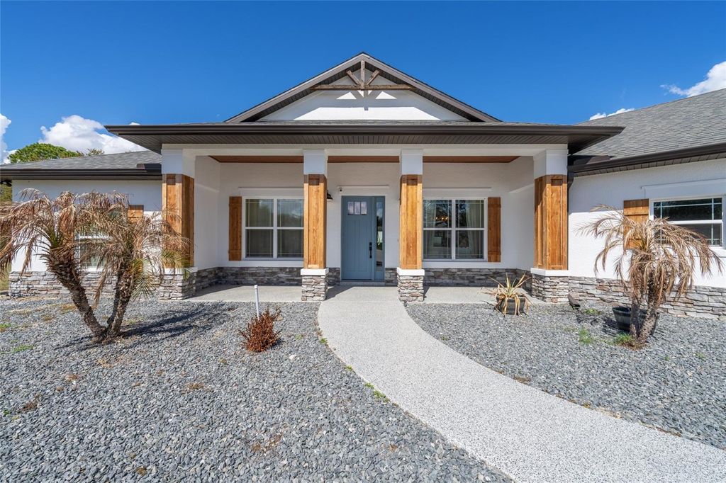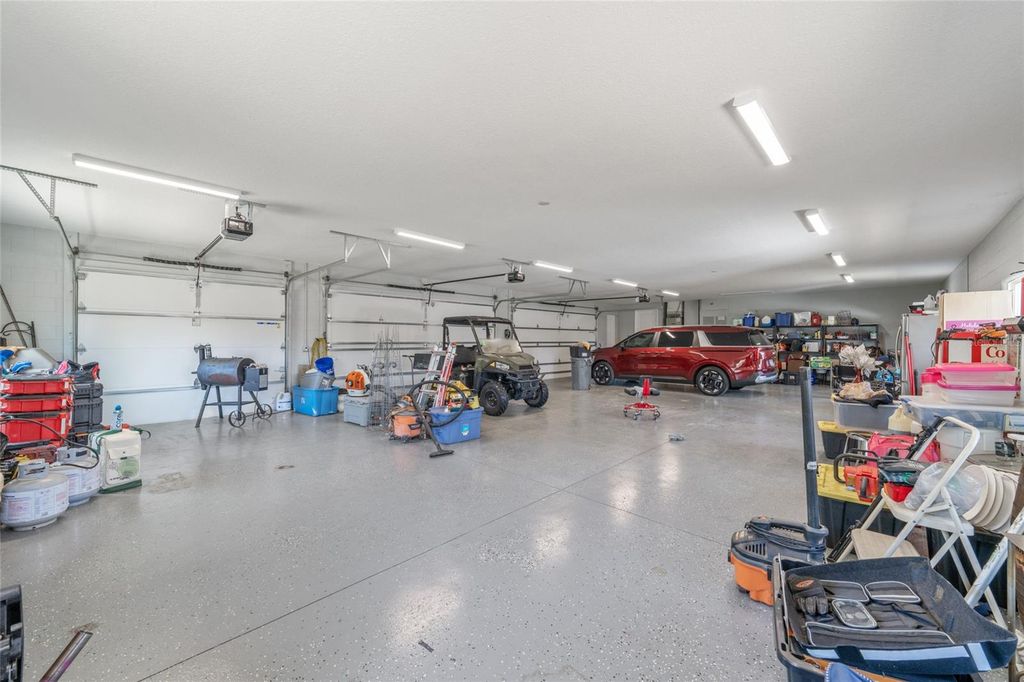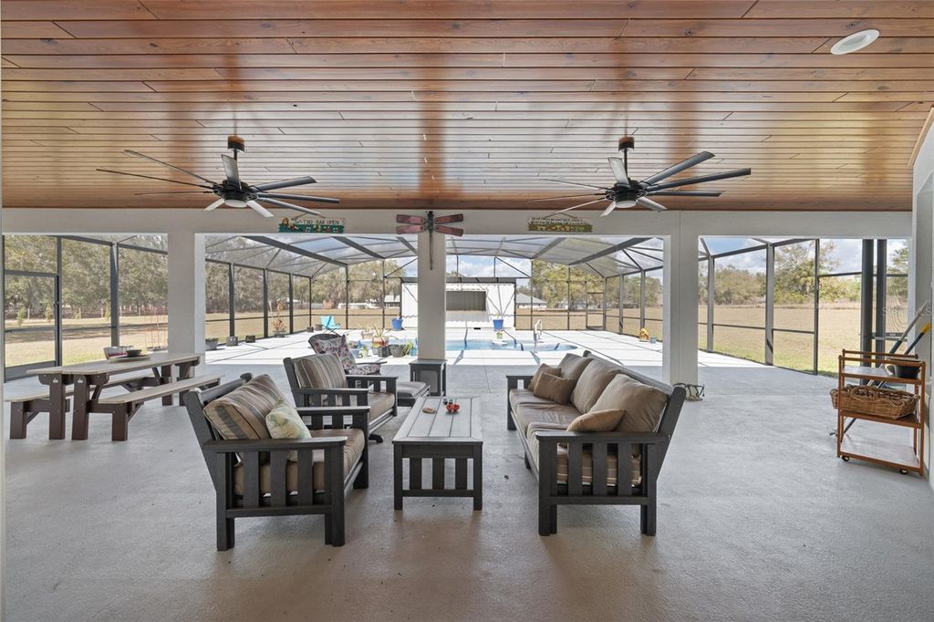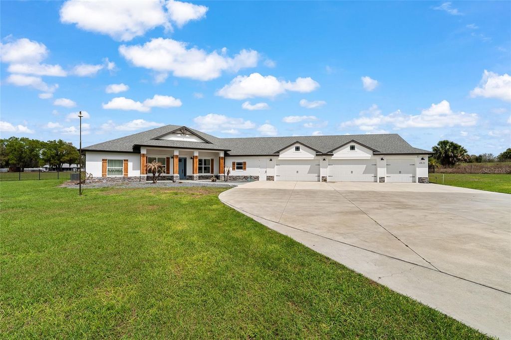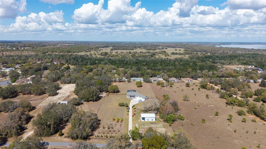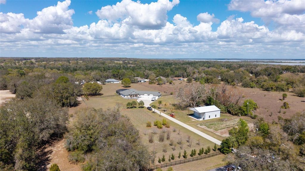 One or more photo(s) has been virtually staged. Welcome to your private 5-acre sanctuary in Fruitland Park! This 2021 custom-built estate seamlessly blends modern luxury with a true hobby-farm lifestyle. From the moment you pass through the private gate, you'll be captivated by the sprawling, professionally managed grounds featuring dedicated rows for planting with a full irrigation system"”perfect for a private vineyard, orchard, or organic garden. Inside, the home boasts over 3,100 sq. ft. of high-end finishes, including 10-foot ceilings, cedar-beamed tray details, and a gourmet chef's kitchen anchored by two Quarts islands and a professional 6-burner Thor gas range. The living area opens completely to the outdoors via four retractable sliding glass doors, leading to a massive 52x44 screened lanai with a sparkling freeform saltwater pool, jetted spa, and Ponderosa Pine ceilings. The layout features two master suites, one of which includes a custom built in closet with a gun safe for added security. Built with efficiency in mind, the home features an insulated attic, a fully insulated garage, and an owned propane tank (no lease fees!), ensuring comfort and lower utility costs year-round. For the hobbyist, a detached 34x40 workshop offers ample space for an RV, boat, or car collection. This property is a rare find, offering the ultimate in craftsmanship, privacy, and agricultural potential. Check out a video showing of the home: https://youtu.be/ga9gT58Avlc?si=XLft8uuVxE3wmQVE