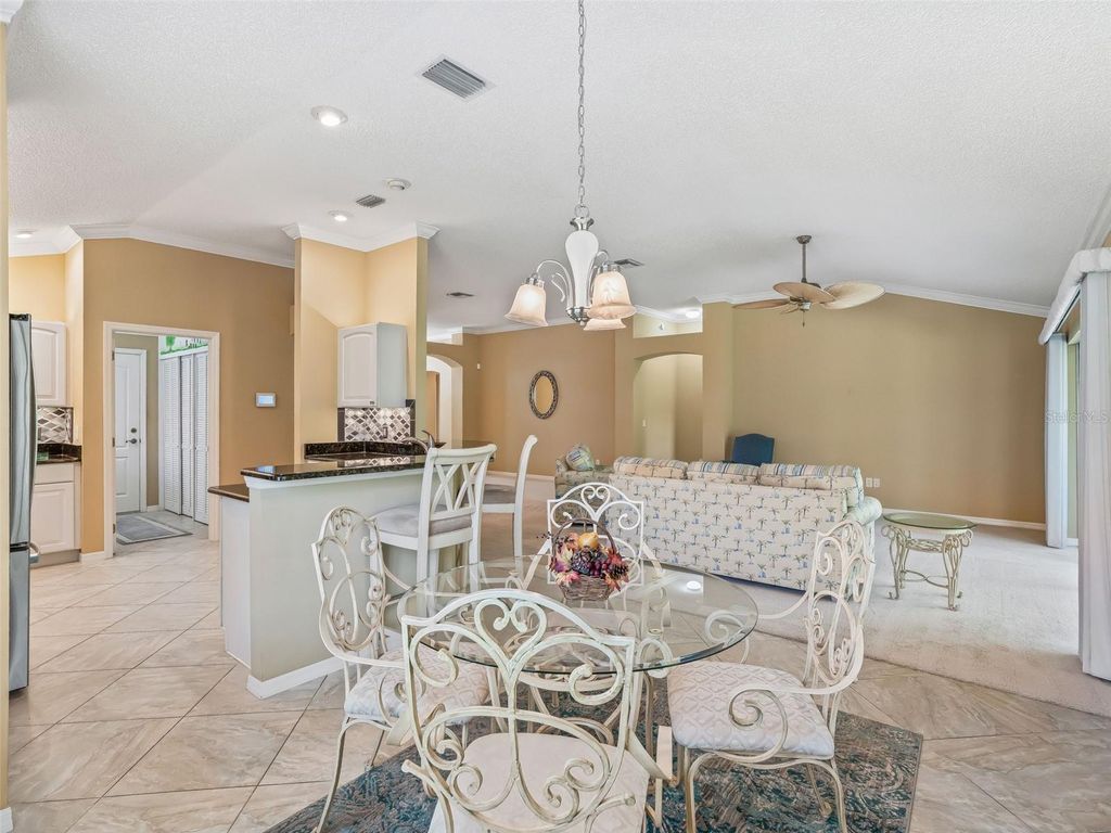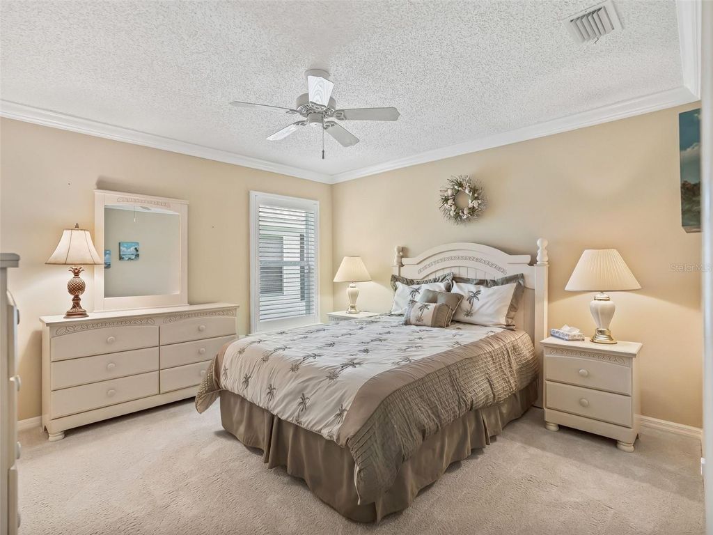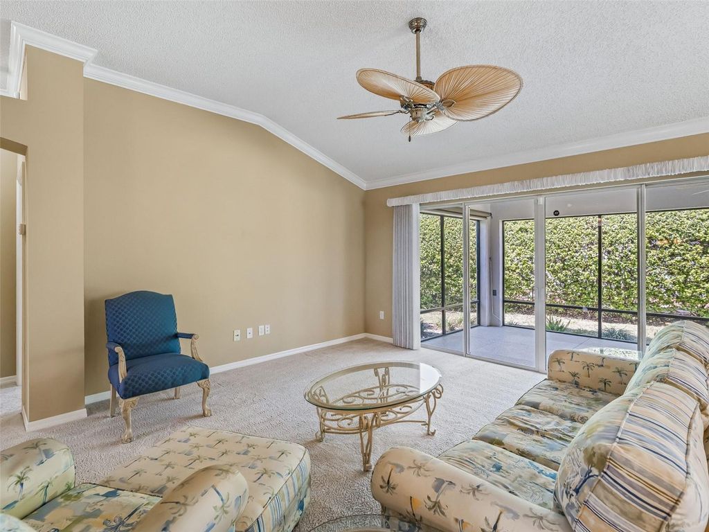 Tucked away on a quiet cul-de-sac in the highly sought-after community of The Villages, this beautifully maintained Lantana model offers the perfect blend of comfort, style, and convenience. Ideally positioned between CR 466 and CR 466A, the home enjoys both privacy and easy access to shopping, dining, and recreation. From the moment you arrive, the painted driveway and walkway, mature landscaping, and inviting curb appeal set the tone. Inside, you'll find a light-filled, open floorplan enhanced by neutral tones, crown molding throughout, and plantation shutters on every window"”creating a timeless and elegant feel. The spacious kitchen is designed for both everyday living and entertaining, featuring stainless steel appliances, granite countertops, a gas range, abundant cabinetry, and a cheerful eat-in area. Just off the kitchen, the large interior laundry room adds convenience and functionality. The primary suite is a relaxing retreat, complete with a double-sink vanity, jetted soaking tub, and separate shower"”perfect for a spa-like experience at home. A versatile front room easily adapts to your needs as a guest room, office, or media space. Additional highlights include a golf cart garage, attic storage, a NuTone central vacuum system, and a WaterBoss filtration system. Major updates such as a new HVAC system (December 2023) and new roof (July 2024) provide added peace of mind. Enjoy Florida living year-round with an extended lanai overlooking a private backyard"”ideal for relaxing or entertaining. A charming screened front porch adds yet another space to unwind. Located just minutes from the impressive Lake Miona Recreation Center, this impeccably cared-for home offers the lifestyle you've been waiting for. Also, Cane Garden Country Club, and the Heron & Pelican executive golf courses are in close proximity.