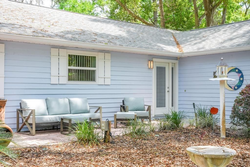 LIVE THE MT DORA LIFESTYLE YOU HAVE DREAMED OF! Charming, UPDATED 3 bedroom / 2 bath home positioned at the end of the Cul De Sac with a large, private yard. Step onto the property and walk the terracotta pavers (low maintenance and long durability) through the wooded garden paths that surround this home and into the serene sanctuary that you are craving. Enter the residence to find a beautifully UPDATED and IMPECABLY MAINTAINED home that is move-in ready! Kitchen is well-appointed with updated wood cabinets, built in Wall-Pantry, Granite Counters and a Spacious Peninsula / Island that is perfect for spreading out with coffee and a newspaper or tapas, crudités, or canapés for a more formal gathering. The Cooktop and Built-In Oven, Stainless Dishwasher & Refrigerator will make preparation for any meal enjoyable. Notice the Lighting set in the ceilings to show off your art finds which will be many since you are in WALKING DISTANCE TO DOWNTOWN - no more hunting for parking!!! Natural Light and airy, a seamless indoor/outdoor transition when you open the two sets of Double Sliding Doors to the Screened in Porch and onto the Terracotta Paved Back Deck to expand the gatherings or bring the serenity of the Private Backyard closer. This home offers 2 PRIMARY Bedroom opportunities. The Main Primary is near 300 sq ft with Sliding Doors to the Screened Porch. Large Walk-Through Closet and Nicely Appointed Bath with Double Sinks, Walk-In Shower with Multiple Shower-Head System. The Second Primary also has Sliders to the Screened Porch and a Jack-N-Jill Bath with a Tub and Shower and Double-Closets. Third Bedroom has a Built-In Closet as well. As soon as you walk in the front entryway, you know this is where you are meant to be. Don't miss this rare OPPORTUNITY in THE HIGHLANDS OF MOUNT DORA! Entire House Re-Plumbed June 2019. New Roof February 2021. New A/C & Handler August 2023. New Rainbird Timer Irrigation System, Valves & Timer August 2024. New carpet in Primary Bedroom October 2025. New Paint and Epoxy Floor in Garage March 2026.