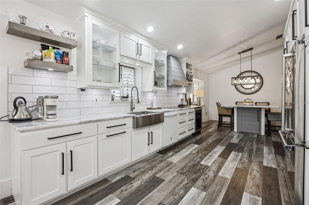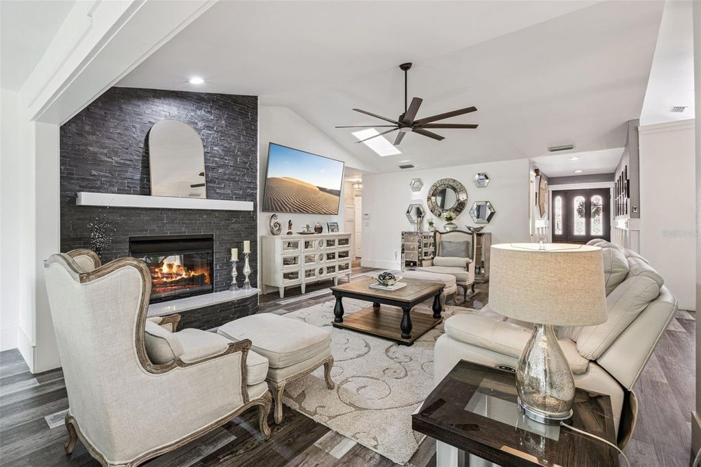 Welcome to elevated lake living, nestled within the sought-after waterfront community of Waterwood on the Harris Chain of Lakes. This fully renovated 3-bedroom, 2.5-bath home with a 3-car garage offers the perfect blend of luxury, comfort, and everyday functionality"”updated from top to bottom. At the heart of the home is a beautifully designed kitchen featuring a Viking refrigerator, warming drawer, wine fridge, beautiful stone countertops, range hood and all-new cabinetry"”ideal for both entertaining and daily living. New luxury vinyl plank flooring flows seamlessly throughout the home, complemented by a dedicated office space for work or quiet retreat. A striking dual-sided fireplace creates a warm, inviting connection between the living room and the primary suite. All bathrooms have been completely remodeled with modern finishes, offering a clean feel throughout. Step outside to your quaint and quiet backyard"”perfect for relaxing evenings or enjoying Florida's beautiful weather. Additional features include gutters for added convenience and peace of mind. Living in Waterwood means embracing the lake lifestyle, with access to a clubhouse and pool, community dock, private boat ramp, boat slips, and storage for boats, RVs, and trailers"”all with a low HOA. Fully renovated homes in this community are rare"”don't miss your opportunity to experience the best of Yalaha living.
