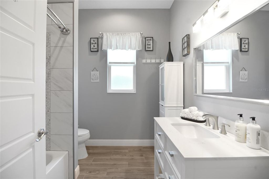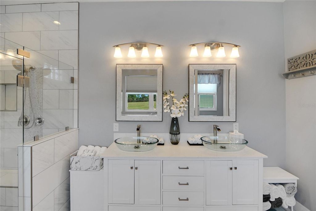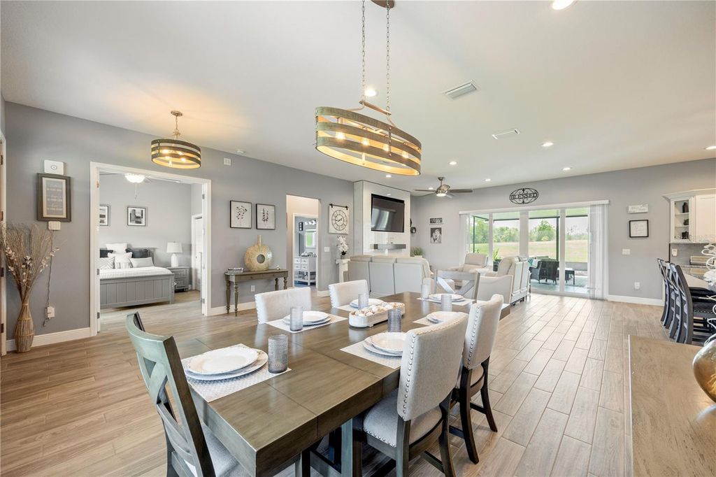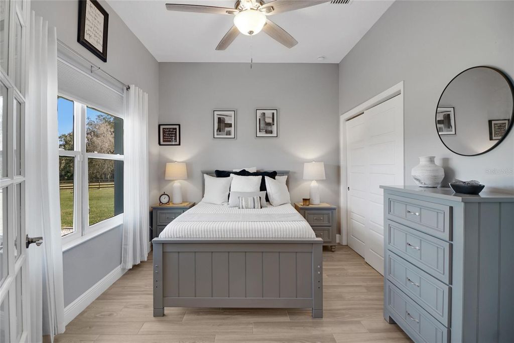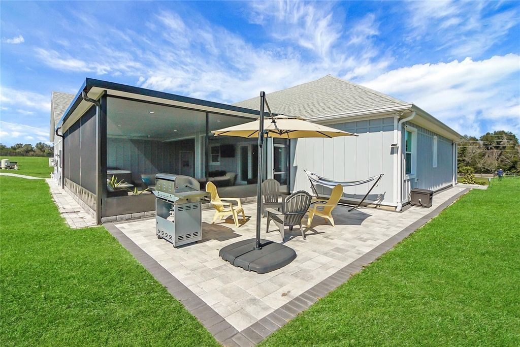 Experience country living at its finest in this stunning custom-built 2021 BLOCK home, finished with Hardie Board planks that create a modern farmhouse feel. Nestled on 5 fully fenced acres with an IRON solar powered gate providing a sense of privacy, this property offers the perfect blend of luxury, comfort, hobbies, and outdoor living. From the moment you arrive, the grand 8-foot double doors welcome you into an open and thoughtfully designed split floor plan featuring 10-foot ceilings, volume spaces, Ceramic wood-look tile flooring, 5-inch baseboards, and an abundance of natural light throughout. The inviting living room showcases an elegant porcelain tile electric fireplace, creating a perfect space to relax and unwind. The chef's kitchen is truly the heart of the home, offering an expansive breakfast bar with natural quartzite countertops, a farmhouse-style sink, a massive custom walk-in pantry, soft-close cabinetry, high-end fingerprint-resistant stainless steel appliances, recessed and pendant lighting, and a dedicated coffee bar area designed for both function and style. The luxurious primary suite provides a private retreat with a tray ceiling and its own porcelain tile fireplace, while the spa-inspired en suite bathroom features an oversized walk-in shower with multiple shower heads and bench seating, a freestanding whirlpool soaking tub, a bidet toilet, and an impressive California-style walk-in closet complete with built-ins and a sitting area. Just beyond the primary suite, you'll find a private office, an indoor laundry room, and a convenient half bath. Upstairs, a spacious bonus room offers endless possibilities, whether used as a media room, home gym, or additional guest space. The secondary bedrooms are generously sized and share a full bathroom with a tub and shower combination. Step outside and take in everything this property has to offer, including a charming covered front porch, a screened side porch, and an expansive lanai featuring a six-person hot tub"”perfect for entertaining or simply enjoying peaceful evenings. The outdoor space continues with a large paver patio, multiple custom built storage sheds including one with electricity, a greenhouse, and plenty of open land ready for your animals, horses, or recreational toys. This luxury home is full of opportunities including a possible Mini farm if that is your heart's desire, as there are already chickens in place producing eggs and the zoning allows for various other animals as well. The oversized garage is equally impressive, featuring epoxy flooring, a water softener system, a split A/C unit, and additional storage space. Built with spray foam insulation, the home is designed for energy efficiency, helping maintain cooler temperatures year-round. Ideally located just 10 minutes from Brownwood Town Square in The Villages, this property offers the serenity of country living with convenient access to shopping, dining, and entertainment. In addition, this home is situated in a country setting but has easy access to US HWY 301, Interstate 75 and Hwy 44. This one-of-a-kind homestead truly delivers space, luxury, and lifestyle all in one remarkable package. Schedule your private showing today and start living your best life.