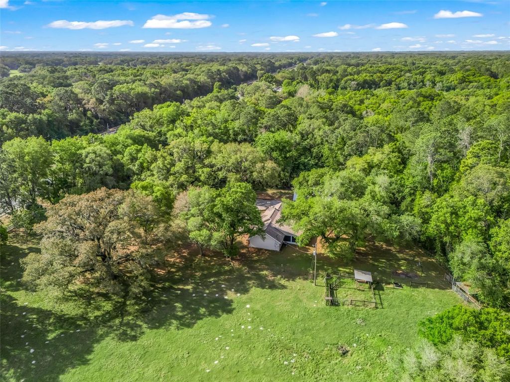 NO HOA!! LOCATION LOCATION!! Experience the charm of country living on this beautiful 6.81 acre property, ideally situated on a spacious corner lot shaded by stunning oak trees. This 4-bedroom, 3-bath totally remodel home is set back off the road, offering privacy, tranquility, and that true rural atmosphere buyers are looking for. Inside, you'll find a warm and inviting wood-burning fireplace perfect for those cooler evening and a comfortable, functional layout designed for everyday living. This home features two primary bedrooms, each with its own private bathroom, offering flexibility for multi-generational living or guest accommodations. The kitchen includes a brand-new refrigerator, with all other appliances approximately 5 years old or newer. Major updates include a new roof (2024) and two water heaters (2024 & 2022). The A/C system is approximately 10 years old. Step outside to the large screened-in back porch an ideal place to relax and take in the peaceful surroundings. This property is set up and ready for your animals! Bring the horses, cows, and all your toys there's a separate pasture area with two stalls already in place. The impressive 30x80 pole barn with loft and attached workshop (with electric) offers endless possibilities and could easily function as a feed room, hay storage, or tack room. You'll also appreciate the covered RV/boat parking, making this property as functional as it is beautiful. The west and south sides of the property are lined with trees, creating a private, secluded setting where you can enjoy nature and frequent wildlife including wild turkeys roaming the land. Whether you're looking for a mini farm, a place to spread out, or simply enjoy the quiet country lifestyle this property offers endless possibilities. Very convenient to local grocery stores and restaurants. Easy commute to I-75 which goes to Tampa, Ocala and the turnpike. Call today for appointment.