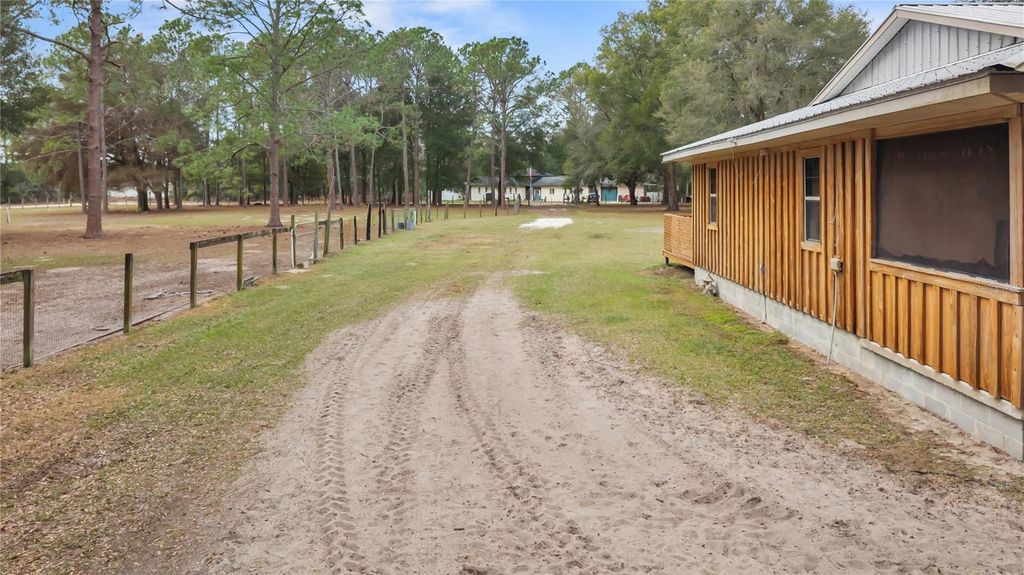 **Motivated seller** This homestead in Central Florida is a MUST SEE! NO HOA! Nestled among mature oaks, this spacious home sits on nearly 7 acres with endless possibilities! Offering privacy and versatility this custom-built Florida-style home is truly one of a kind. The residence features a desirable split floor plan, abundant storage space, and a charming wraparound porch ideal for enjoying the natural surroundings. Inside, entertain with ease beside the wood-burning fireplace with stone façade or gather in the expansive 32' x 28' living room, perfect for hosting large gatherings or creating multiple living spaces. Designed for efficiency and durability, the home includes solar panels to help minimize energy costs, naturally resilient cypress siding, and brand-new dual 3.5-ton A/C units to keep the home comfortable year-round. The land is well suited for animals and agricultural use, featuring an ample-sized shed with attached rabbit or chicken pen, two fenced pastures, and the option to allow livestock to roam throughout the fully fenced property. Enjoy the privacy of large adjacent wooded tracts of land and watch local wildlife. Additional features include an impressive 2,600 sq ft workshop with slab foundation and high ceilings. Equipped with separate power, well, and septic, it offers incredible flexibility"”ideal for equine stables, a home-based business, storage, or lease the space completely for passive income. The sale includes THREE adjacent parcels platted for up to EIGHT single-family lots, offering immediate development or investment opportunity if desired. Conveniently located minutes from shopping, groceries, and prominent equestrian parks such as WEC and HITS, this home is also close to I-75, Florida Horse Park, Rainbow River, and numerous outdoor and recreational amenities. This rare property offers space, freedom, and opportunity"”don't miss your chance to make it yours.