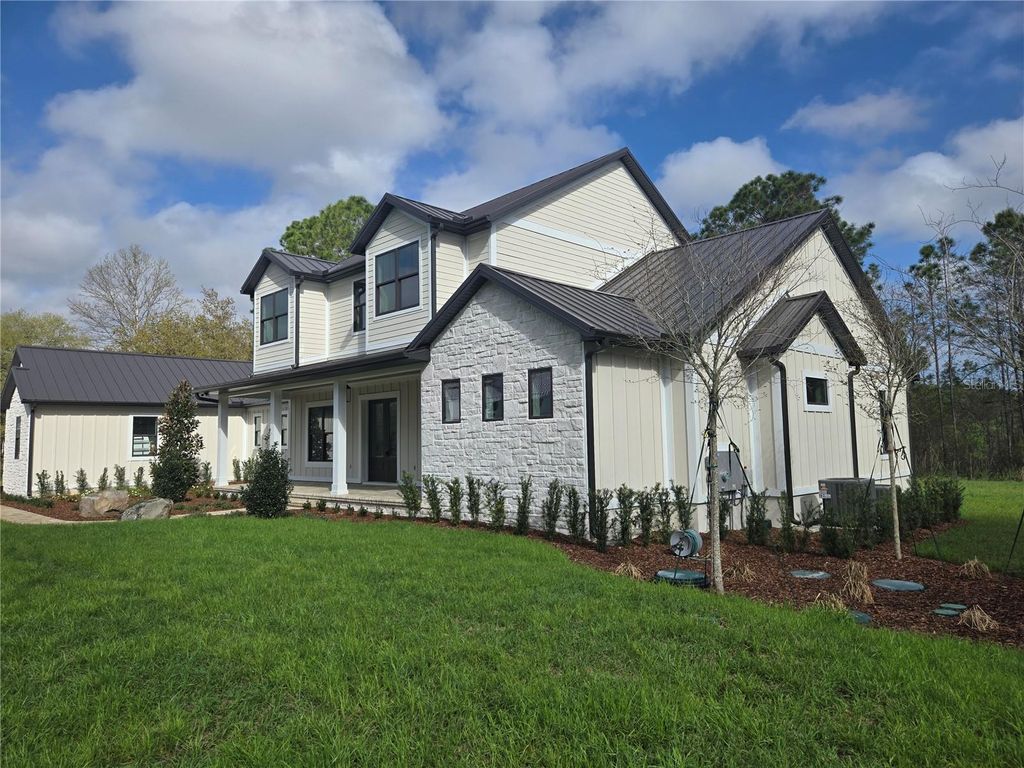 Under Construction. Expected finish date is Mid-April 2026. Located in Blue Spring Reserve a gated community of upscale homes. Excellent location right down the street from the Fl turnpike and Hwy 27 for easy commutes. The lot is roughly 1.2 acres with woodlands and wetlands in the rear. Room to add a pool. There's a creek running through the property. Very peaceful environment. Features include Owners suite first floor, owners suite has a huge walk in shower with 3 shower heads and a seperate bath tub. Huge walk in closets. Guest suite first floor, Second floor loft, Second floor game room above garage, Laundry rooms on both first and second floor, Custom kitchen with solid plywood cabinets, High efficiency A/C systems, High efficiency water heater, Spray foam insulation, Double pane windows, Decorative insulated garage doors, Electric fireplace in great room, crown molding and much more! And....there may still time to add some upgrades and pick colors.