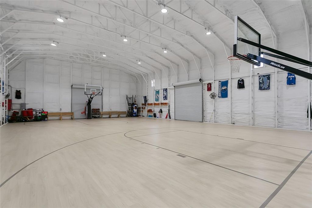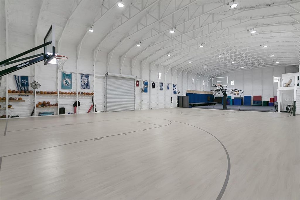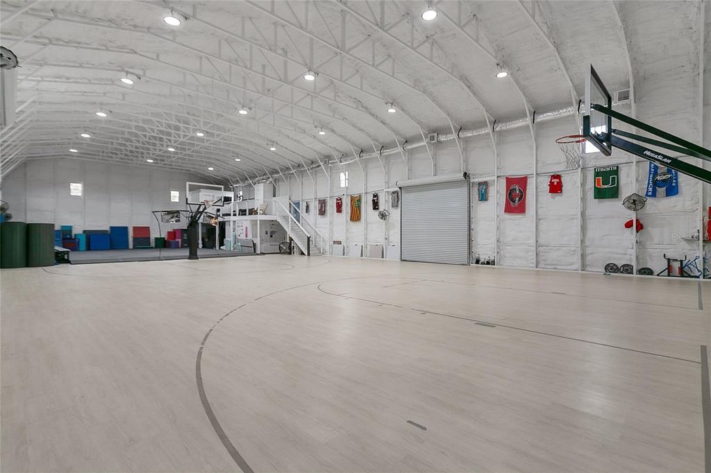 Under contract-accepting backup offers. The perfect balance of space, freedom, and modern living is hard to come by"”but this exceptional Groveland estate delivers it all. Tucked away on just over 9 acres of private land, this beautifully maintained property offers a rare combination of upscale finishes, recreational amenities, and wide-open potential with no HOA restrictions. The 4-bedroom, 3-bath custom home has been thoughtfully designed for both everyday comfort and effortless entertaining. High ceilings, an open-concept, and abundant natural light create a welcoming interior, while the kitchen"”complete with quartz countertops, stainless steel appliances, and a large center island"”anchors the heart of the home. The spacious owner's suite offers a peaceful retreat, featuring a spa-style bath, dual vanities, and two generous walk-in closets. Step outside and you'll find what truly sets this property apart: a sparkling saltwater pool and a covered lanai with retractable screens, perfect for relaxing, entertaining, or simply enjoying Florida's year-round sunshine. But the real showstopper is the massive, detached climate-controlled gymnasium, featuring three oversized bay doors and a nearly full-size indoor basketball court. Whether you're hosting weekend games, running a private training space, or dreaming of a future guest house, workshop, or event venue"”the possibilities here are endless. Lovingly cared for, incredibly versatile, and ready for its next chapter"”this estate isn't just a home. It's an opportunity.