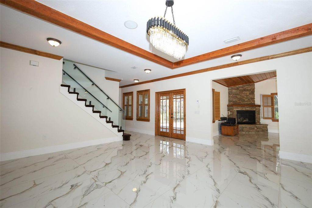 Seller is willing to contribute toward an interest rate buy down for the buyer! Welcome to your private estate in the gated Beauclair Ranch Club a rare 2.95-acre parcel on a quiet cul-de-sac backing to a tranquil preserve. Enjoy the Florida lifestyle with a wrap-around porch and new pergola, plus a screened-in pool and hot tub surrounded by nature. Inside, newly upgraded systems roof and hot water heater, AC's 2025, plus fresh paint, upgraded baths and fixtures mean move-in ready peace of mind. The gourmet kitchen features quartz countertops, built-in ovens and cooktop, ideally suited for the home chef. The main level primary suite boasts tray ceilings, dual walk-in closets and a spa-inspired bath with soaking tub and walk-in shower. Also on the main level: an extra room perfect for home office or bonus space. Up one level you'll find three generous bedrooms and two full baths. Car enthusiasts will appreciate the attached 3-car garage with workshop/golf-cart bay and a detached 2-car garage for extra storage or projects. With nearly one cleared acre and abundant room for expansion, this estate blends privacy, charm and modern updates "” all in one of Tavares' most distinguished communities. HOA includes internet, cable security gate.