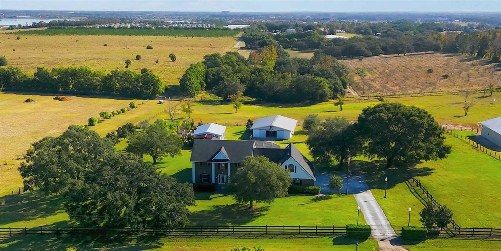 SUBSTANTIAL PRICE ADJUSTMENT on this special property, in Winter Garden, but just inside Lake County! For a champion equestrian, home is more than four walls, it's land that performs, space that protects your horses, and a setting that allows you to train, restore, and win.Tucked away in a quiet corner of Winter Garden, yet located in Lake County for lower taxes, this rare brick estate delivers exactly that balance. Privacy when you need it. Convenience when you want it. Properties like this don't come along often. The heart of the estate is the oversized barn, designed with intention and function: aluminum siding, a durable metal roof, six 12x12 stalls with running water, feeding stations, and a dedicated tack room that keeps everything organized and competition-ready. The fully fenced acreage is thoughtfully divided, giving your horses room to move while maintaining safety and control. A separate utility building: currently serving as an aviary adds flexibility for training, storage, or future pursuits. Mature fruit trees enhance the landscape, reinforcing the feeling of a working yet beautiful agricultural retreat. Inside, the home reflects the same balance of strength and refinement. The renovated kitchen is a showpiece, featuring GE Café appliances, waterfall-edge granite countertops, and modern floating shelves, perfect for gathering after long days in the saddle. The expansive 17x21 family room, with soaring 19-foot ceilings, creates a dramatic yet inviting space, while the freshly updated dining room adds polish with new paint and trim. Upstairs, a versatile loft can easily become a fifth bedroom, and the oversized bonus room (13x31) offers endless possibilities: gym, media room, or additional living space and complete with full-length storage. Each secondary bedroom includes its own private sink, connected by a Jack-and-Jill bath, with thoughtful reading lights for quiet moments of rest. Finished with a newly installed epoxy garage floor, every detail of this home has been carefully considered. This is where championship-level function meets everyday comfort. Just minutes from Winter Garden's restaurants, shopping, and hospitals yet worlds away when you return home, this five-acre agricultural retreat offers the tranquility, space, and prestige of true country living. Not just a home. A lifestyle built for those who compete and expect more.