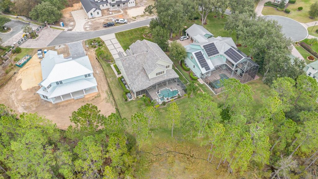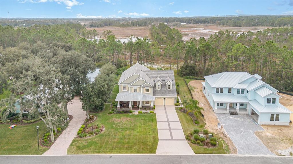REFINED SOUTHERN ELEGANCE meets MODERN CRAFTSMANSHIP in this 5-BEDROOM CUSTOM ESTATE set on 1.7 ACRES in the GATED COMMUNITY of BLUE SPRING RESERVE. Backed by a 300-ACRE NATURE PRESERVE, the home delivers TOTAL PRIVACY beneath majestic oaks and serene conservation views"”while remaining LESS THAN A MILE FROM THE TURNPIKE for easy access to ORLANDO, DISNEY, and the airport. A PAVER-ACCENTED CONCRETE DRIVEWAY welcomes you to a TIMELESS FAÇADE featuring CEDAR-SHAKE ACCENTS, a DEEP WRAPAROUND PORCH, and an OVERSIZED 2.5-CAR GARAGE. Inside, nearly 5,000 SQ FT of thoughtfully designed living space showcases COFFERED CEILINGS, CROWN MOLDING, and WAINSCOTING, complemented by a NEUTRAL PALETTE and ABUNDANT NATURAL LIGHT. The CHEF'S KITCHEN is built to impress with a 5-BURNER GAS COOKTOP, DOUBLE OVENS, PREP ISLAND WITH SINK, BUTLER'S PANTRY, and GRANITE COUNTERS"”opening seamlessly to a SPACIOUS FAMILY ROOM centered around an ELECTRIC FIREPLACE and FRENCH DOORS leading to the POOL. A WET BAR and WINE NOOK elevate entertaining. The PRIMARY SUITE is a private retreat with DIRECT POOL ACCESS, TRAY CEILING, CUSTOM WALK-IN CLOSET, and a SPA-INSPIRED BATH complete with SOAKING TUB and DUAL WALK-IN SHOWERS. Upstairs offers FOUR ADDITIONAL BEDROOMS"”each with a WALK-IN CLOSET"”along with TWO FULL BATHS, a LOFT, and a BONUS/GAME ROOM WITH WET BAR. Step outside to a SCREEN-ENCLOSED POOL AND LANAI featuring a BUILT-IN GRILL, HALF BATH, and tranquil WETLAND VIEWS"”perfect for year-round outdoor living. Notable upgrades include TWO NEWER HVAC SYSTEMS, TWO TANKLESS WATER HEATERS, a WHOLE-HOUSE GENERATOR, WINDOW TINTING, FENCED DOG RUN, and a CUSTOM PET NOOK beneath the staircase. BLUE SPRING RESERVE offers the rare balance of SERENITY AND CONVENIENCE"”where REFINED LIVING and NATURAL BEAUTY come together effortlessly.