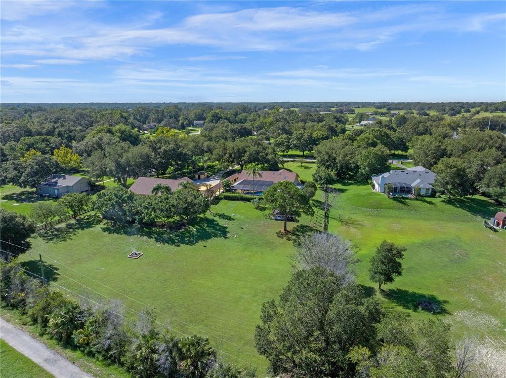 Welcome to 32133 Wolf Branch Lane - a breathtaking custom-built Mediterranean estate set on 2.55 acres in the desirable town of Sorrento. Proudly maintained by its original owners, this exceptional home offers 4 bedrooms, 4.5 baths, a resort-style saltwater pool, and a massive 2,912 Sq. Ft. garage with room for a +/- 45' RV, boat(s), multiple vehicles, toys and more. As you enter the property through the elegant iron gate, you're immediately struck by the perfectly manicured grounds and a majestic 100-year-old oak tree, creating an irreplaceable park-like setting. Inside, the open-concept design seamlessly blends the living room, dining area, and chef's kitchen beneath soaring vaulted ceilings"”all with expansive views of the pool. The gourmet kitchen is a true showpiece, featuring a large island with bar seating, custom cabinetry, granite countertops, GE Monogram appliances, butler's pantry with dual refrigerators, wine cellar, and a cozy breakfast nook overlooking the pool. A large PGT sliding glass door leads to the ultimate backyard oasis: a screened-in retreat with a saltwater solar-heated pool, gas-heated spa, spacious covered lanai with dining and lounging spaces, and a separate gaming/BBQ pavilion. All positioned to capture the incredible sunset views and offering an ideal setup for entertaining and family fun! The luxurious primary suite offers a tranquil seating area with an electric fireplace, pool views, dual walk-in closets, and a spa-like bath with dual vanities and walk-in shower. Three additional spacious bedrooms (two with ensuite baths), two private offices, a mudroom, and a dedicated pool bath complete the interior. The oversized garage/shop is a rare amenity"”featuring four automatic roll-up doors, 400-amp power, dual 50-amp RV/boat hookups, mezzanine storage rooms, and an air-conditioned flex space perfect for a gym or studio. Other Highlights Include- Half Court Basketball Court, Greenhouse, Fenced Garden Area, Newer Roof (2021), Advanced Security System, Irrigation Well, Well/Pump House, Newer Drainfield, Fully Cross Fenced Property and more! Ideally located just minutes from Hwy 429, this estate offers effortless access to all of Central Florida and the charming downtown of Mount Dora, renowned for its shopping, dining, and festivals. An estate with this combination of luxury, space, privacy, security and amenities is truly a rare find. Schedule your private tour today!