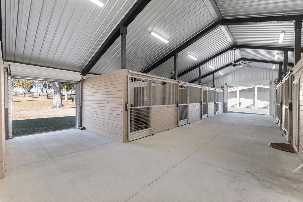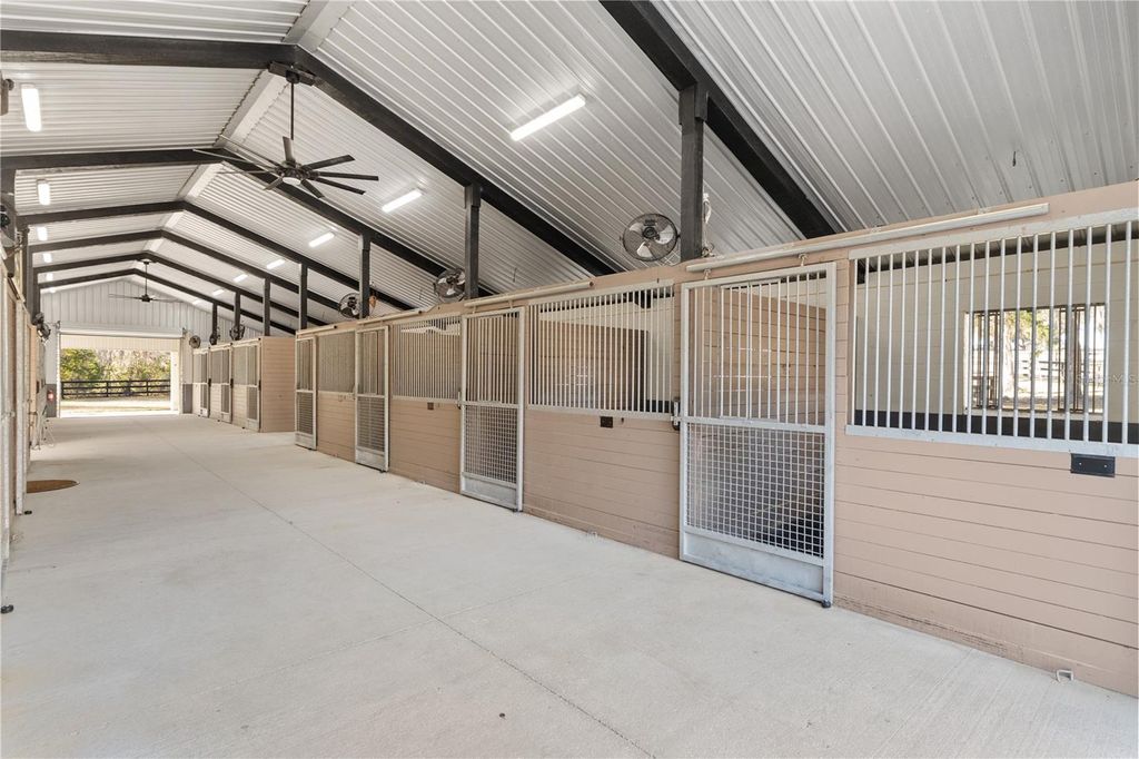 Under contract-accepting backup offers. Located within Ocala's Farm Preservation Area and neighboring Bridlewood Farm, this exceptional 11.65-acre equestrian property is just minutes from the World Equestrian Center. Designed primarily for equestrian use, the offering consists of two parcels (10 acres + 1.65 acres) and features high, dry land; ideal for long-term agricultural and equestrian use. The property is anchored by a new concrete block 12-stall barn with 12x12 stalls, high ceilings, excellent ventilation, rubber mats, fans in every stall, automatic waterers, fly spray system, cement aisle, and dedicated feed and tack rooms. The barn measures approximately 108' x 42' with a metal roof and an efficient layout built for long-term use and expansion. A 62' x 42' multi-use building, previously used as an equine rehabilitation facility, is set up to support a treadmill and saltwater spa, and includes general storage with a half bath plus a separate apartment with full kitchen and full bath. Mini-split A/C systems serve both sides, totaling approximately 1,000± sq ft of finished space. The property also includes a new 2-bedroom, 2-bath mobile home (~900 sq ft) with its own private entrance. Multiple large paddocks, mature trees, extensive fencing, two wells, two septic systems, and several additional storage sheds complete the setup. With ample space to add an arena, expand facilities, or build a custom estate home, this is a truly versatile equestrian property ready to grow into something special.