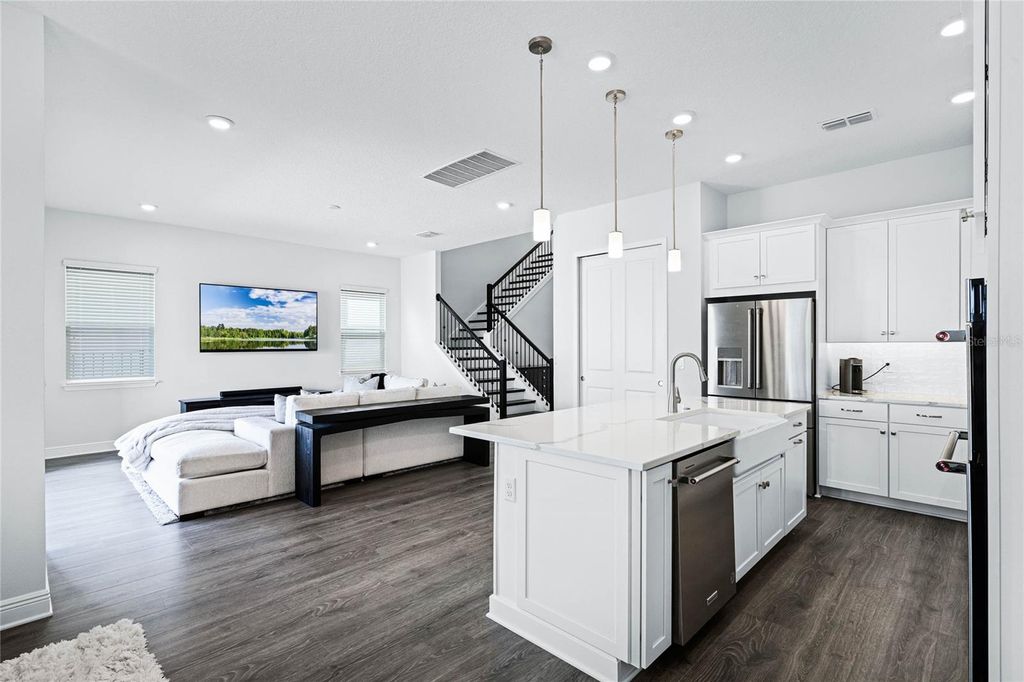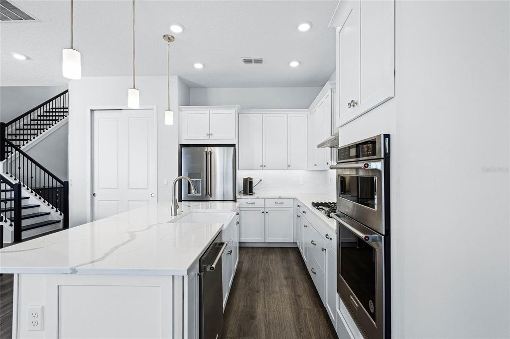 Welcome to the pinnacle of refined living in the exclusive gated community of Bella Collina. This distinguished 4-bedroom, 3.5-bath golf course residence showcases timeless features and tasteful upgrades throughout the dining room, kitchen, primary suite, and staircase. Upon entering, you're greeted by an abundance of natural light, soaring ceilings, and upgraded luxury vinyl flooring that flows seamlessly throughout the home. The main living area features an open-concept design, seamlessly blending the family room, kitchen, and dining room"”all offering stunning views of the pool and golf course. The kitchen is a chef's dream, boasting shaker cabinetry, quartz countertops, a stylish backsplash, KitchenAid appliances, a gas cooktop, and ample space for all your culinary needs. The dining room comfortably accommodates eight, perfect for entertaining friends or enjoying family meals. The primary suite, conveniently located on the first floor, offers a spacious retreat with a walk-in closet, built-in features, and a spa-like ensuite with dual vanities, upgraded countertops, a soaking tub, and a large walk-in shower with a rain feature. Ascend the beautifully designed staircase to discover a large loft, three additional bedrooms, and two more bathrooms, including one bedroom with an ensuite. All bedrooms feature walk-in closets. Outdoor living is taken to new heights with a fully automated pool and hot tub combo, complete with LED lighting, a heat pump, and an extended paver deck within a fully fenced lot. The Club at Bella Collina offers upscale amenities, including spa facilities, a full-service fitness center, and a member-exclusive restaurant serving breakfast, lunch, and dinner daily. Nestled between Lake Apopka and Bella Collina's own spring-fed Lake Siena, the Sir Nick Faldo-designed championship golf course boasts impressive views with dramatic elevation changes and undulating greens. Located just a short drive from the magic of Disney, the vibrant atmosphere of International Drive, and premier shopping at Millennia Mall, this home offers it all. Montverde Academy, a world-class educational institution known for its commitment to academic excellence, is also less than three miles away. Discover the perfect blend of sophistication and functionality in this meticulously crafted home, offering both comfort and style. Schedule a private viewing today and make this your retreat in the heart of convenience.
