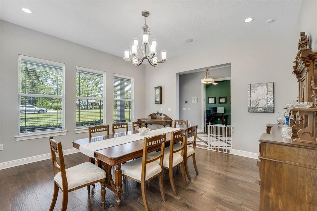 Tucked away in the peaceful countryside of rural Clermont, this stunning custom-built pool home features 4 bedrooms, 3.5 bathrooms, and sits on an expansive 3.25-acre estate within an exclusive, private gated community. As you approach the property, the impressive open-concept layout immediately captures your attention, highlighted by soaring ceilings and oversized windows that bathe the home in natural light. The gourmet kitchen"”complete with top-of-the-line appliances"”is a chef's delight, while the spacious living area offers an ideal space for hosting gatherings or relaxing with family. It's easy to imagine cozy nights spent playing games around the stone-clad, wood-burning fireplace. Each bedroom provides exceptional comfort, and the primary suite includes a spa-inspired bathroom designed for total relaxation. Outdoors, a custom saltwater pool with a sun shelf and elegant water features anchors the beautifully landscaped backyard, offering endless enjoyment under the Florida sunshine. This residence delivers not just a home, but a lifestyle"”combining privacy, luxury, and tranquility in one of Clermont's most desirable rural locations. It comes fully equipped with every modern convenience: a state-of-the-art security system, hardwired high-speed fiber optic network, RG-6 video prewiring, whole-house audio, LED lighting, and advanced smart-home automation. Transition seamlessly from high-end indoor living to the quintessential Florida outdoors by taking a short walk to your private firepit. Environmentally conscious owners will appreciate the built-in electric vehicle charger located in the oversized garage. Concerned about storm season? This home includes a dedicated media room engineered as a fortified storm room with concrete walls and a windowless design to provide peace of mind. Don't miss your chance to experience this exceptional property. Schedule your showing today and explore the extensive list of custom features and luxury details firsthand.