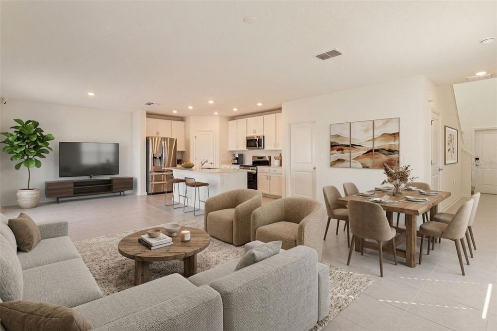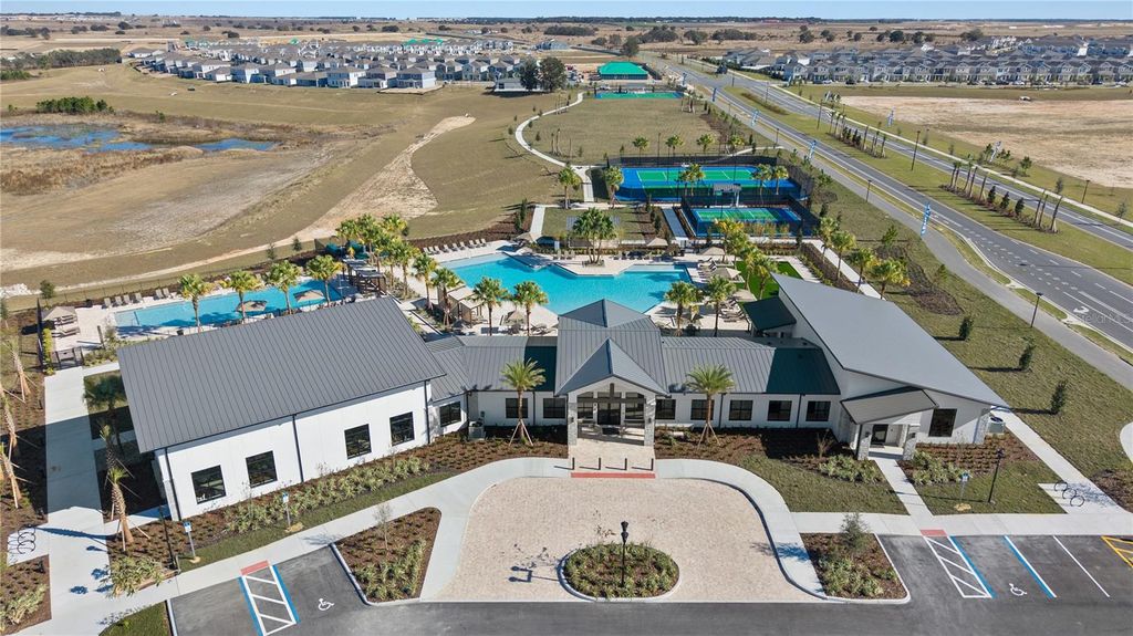 Why wait to build when you can have immediate occupancy on a completed street with no construction noise debris and walking distance to the state of the art amenity center that just opened. Sellers' circumstances changed after only 7 weeks. Interior features ceramic tile throughout the entire first floor. Gorgeous kitchen with 42" White cabinets, quartz counters, huge center island and complemented by a stainless steel appliance package. Walk in pantry, recessed lighting and more! Upstairs you will find the master bedroom with double sink vanity, walk in shower and spacious closet. 3 additional bedrooms plus a loft that can be perfectly used as an office, game room and or entertainment center. Full size laundry room is upstairs complete with the washer and dryer. Exterior features a brick paver driveway and an oversized premium homesite. Community features the aforementioned amenity center which includes but is not limited to multiple pools, tennis, pickleball and basketball courts along with multipurpose fields. Awesome clubhouse with kitchen, lounge area with large screen television, multiple fitness center rooms with ample workout equipment. In addition to all that, the HOA maintains the grass as well saving $$. Location is second to none as you are right in the heart of the new Olympus complex coming soon that is proposed to feature an ice hockey rink, field house, multiple sports fields and training facilities. In addition to the existing Schofield Road, two additional connectors are being built to make travel to Disney and SR 429 quick and easy.