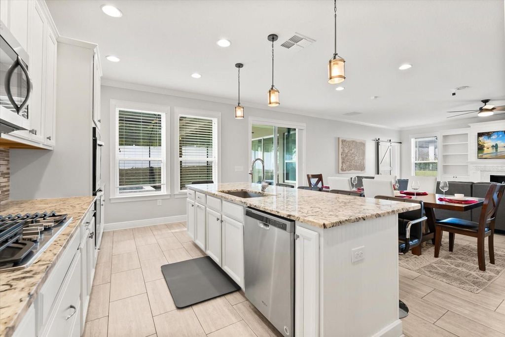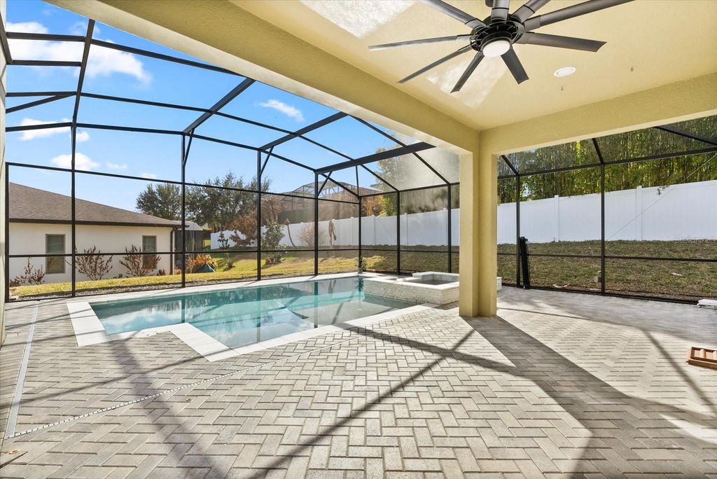 Under contract-accepting backup offers. Welcome Home to Luxury Living in Hunter's Run! Discover this stunning 4-bedroom, 2.5-bath home located in the highly sought-after community of Hunter's Run, where comfort meets elegance and resort-style living. This beautifully designed residence features a spacious open floor plan with a 4-foot extension throughout, offering generous living space. Enjoy your own private oasis with a saltwater pool and built-in jacuzzi, perfect for relaxing and entertaining year-round. Conveniently located just minutes from downtown Clermont, you'll love taking short drives to the local farmers market, restaurants, and shopping. As you arrive, you're welcomed by a paved driveway and a 3-car garage equipped with three overhead storage racks, providing ample space and organization. The home shows like a model, meticulously maintained, featuring crown molding on the first floor and beautifully trimmed windows throughout. Step inside to find a functional mudroom, a private home office with dual soft-close barn doors, and an elegant half bath. The heart of the home opens into a spacious family room showcasing a custom faux fireplace and built-in TV unit, creating the perfect setting for entertaining. The gourmet kitchen is a chef's dream, offering granite countertops, abundant cabinetry, double ovens, a gas range cooktop, and an oversized extended island, ideal for both everyday living and hosting gatherings. One of the highlights of this home is the bright and versatile bonus room, surrounded by windows on all sides. This space can easily be transformed into a playroom, home gym, media room, man cave, she shed, or anything your lifestyle desires. Elegant tile flooring flows throughout the entire first floor, including the upgraded laundry room. All bedrooms are conveniently located upstairs, providing privacy and comfort for family and guests. The oversized primary suite features a luxurious en-suite bathroom with a large walk-in shower, soaking tub, and spacious layout. Step outside and unwind in your custom-built screened pool area, complete with beautiful stone tile, pavers, and tranquil surroundings"”your personal retreat at home. This move-in-ready property truly offers the perfect blend of style, functionality, and location. Don't miss the opportunity to make this exceptional home yours! Schedule your private showing today!