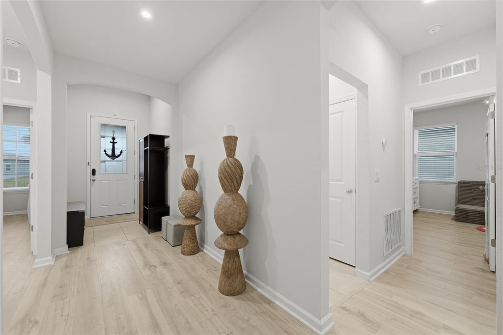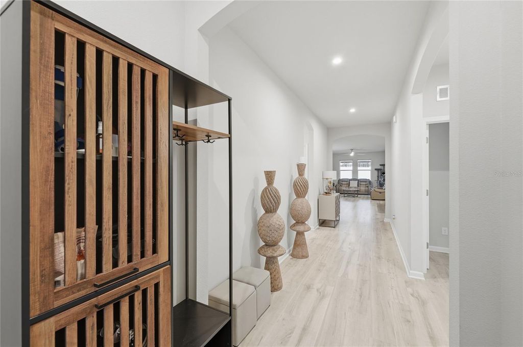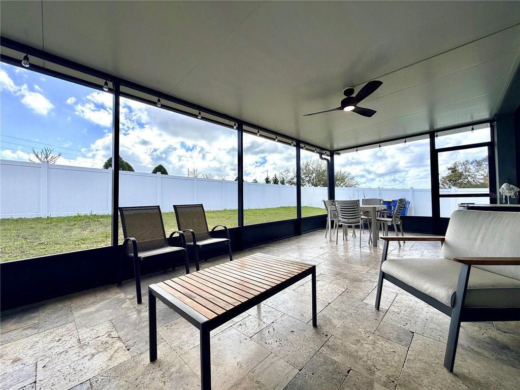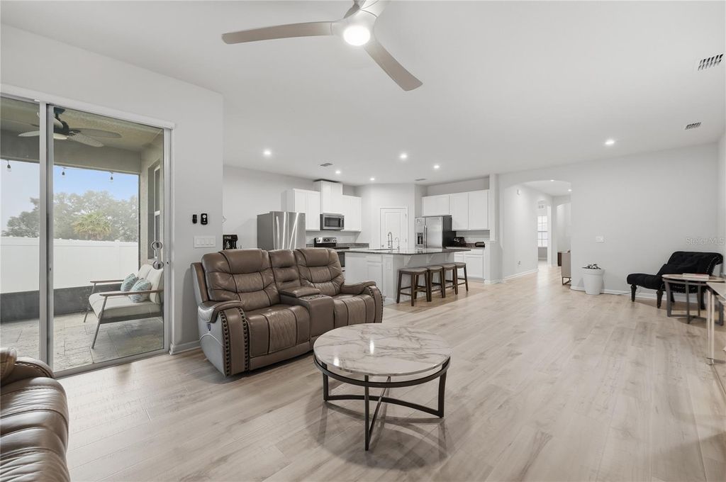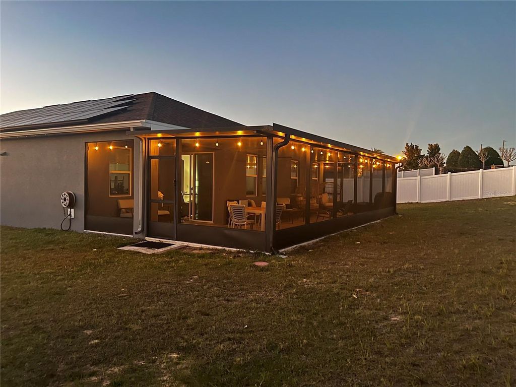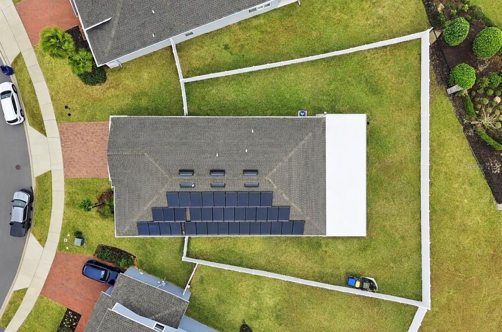 NO ELECTRIC BILL! This spectacular Minneola residence features 36 fully installed 300-watt solar panels, providing a major energy advantage by eliminating electric costs. The fully fenced property offers privacy and is truly move-in ready, featuring 2,034 square feet of living space on a 0.22-acre lot with 4 bedrooms, 2 bathrooms, 9-foot ceilings, no carpet throughout, and all ceiling fans included. Enjoy a spacious covered and screened lanai ideal for outdoor BBQ and entertaining, while the large backyard with no rear neighbors offers room to add a pool, create a play area, install fitness equipment, or build a home garden. The primary bedroom benefits from the lanai roof coverage, helping maintain a cooler and more comfortable temperature by reducing direct sun exposure. The home faces east, allowing for beautiful morning light and cooler afternoons. Additional features include exterior landscape lighting, installed gutters for improved roof drainage, and front windows with solar tint to help reduce heat. The home also includes a whole-house water softener and filtration system, plus an additional kitchen water filter for enhanced purity. The kitchen is equipped with an exterior-vented range hood, ideal for removing cooking odors. The extended paver driveway provides comfortable parking, and the community pool is located directly across the home next to the mailbox area, allowing convenient walks to collect mail while enjoying neighborhood amenities. Located just 3 minutes from the recently expanded Florida Turnpike and approximately 20 minutes to I-4, this prime location offers easy access to Orlando's major attractions, shopping centers, supermarkets, AdventHealth hospital, and popular cycling routes. Built in 2020, this home includes upgrades rarely found in new construction, making it an exceptional opportunity for comfort, efficiency, and location.