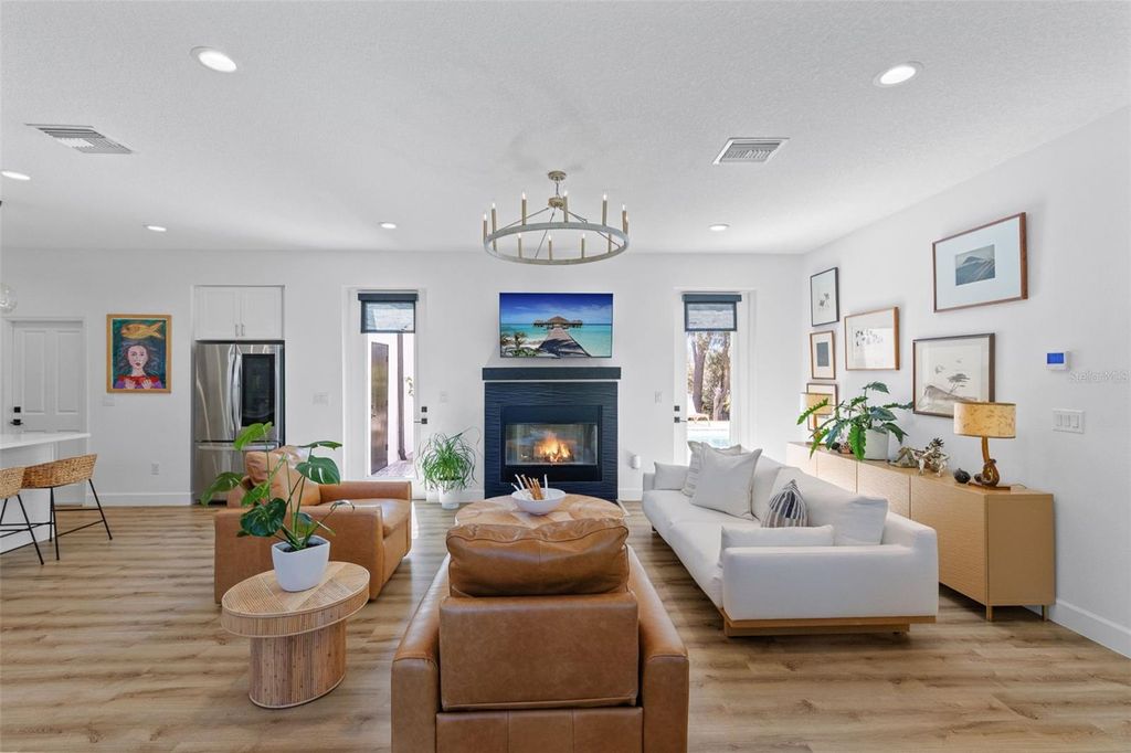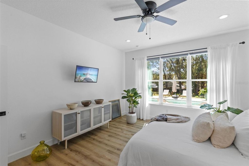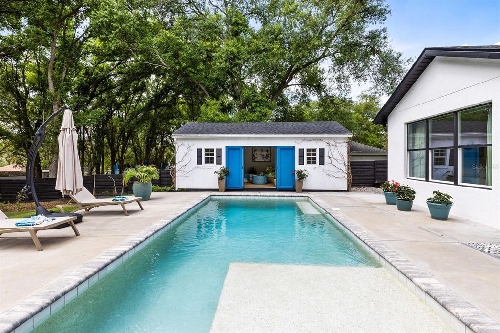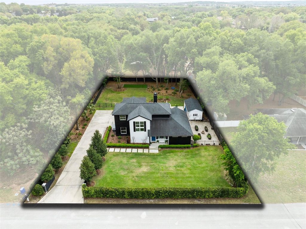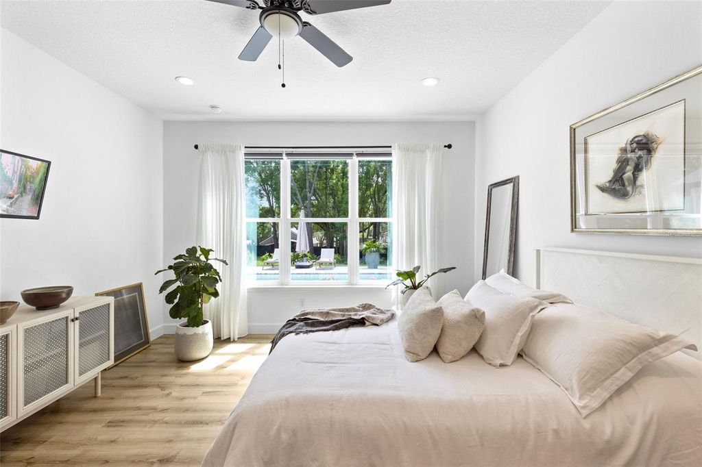On a beautifully manicured half-acre lot with mature landscaping and stunning, large oak trees, this exceptional home offers refined Florida living and the feel of a private retreat in a desirable Montverde location with no HOA. Constructed just five years ago, the residence blends modern design with thoughtful functionality and upgrades throughout (improvements list available on request). The open-concept first floor is filled with natural light and features a contemporary kitchen with a large center island, ideal for gathering and entertaining, seamlessly flowing into the living and dining areas highlighted by a cozy fireplace. The spacious ground floor primary suite provides a serene escape with abundant sunlight, an elegant en-suite bath showcasing a walk-in shower with dual rainfall shower heads, a striking standalone soaking tub and twin custom-designed walk-in closets. Upstairs, two additional bedrooms are connected by a Jack-and-Jill bath, while a cozy den or study area offers flexible space for work or relaxation. Outdoor living shines with an inviting in-ground saltwater pool and large covered dining and seating space with outdoor kitchen, all opening to an expansive lawn and garden area flanked by majestic shady oak trees for year-round enjoyment, along with a raised vegetable garden for the ultimate farm-to-table experience. Adjacent to the pool is a secondary air-conditioned recreation room that can easily serve as an office, studio, pool house, guest house, man cave or she shed, adding incredible versatility. The community also offers lake access to Lake Florence, providing residents with the charm of lakeside living. Ideally near Montverde Academy and just minutes from the new Minneola Turnpike Exchange, there is easy access to SR 429 and SR 408, making commuting and travel convenient. This property combines privacy, modern comfort, and an outstanding location all in one extremely attractive and impressive package.