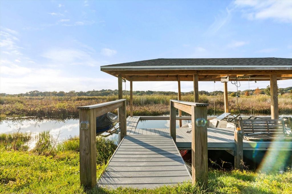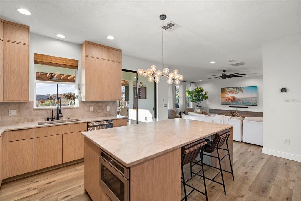 Under contract-accepting backup offers. Positioned on a private canal with direct navigable access to the Clermont Chain of Lakes in Groveland, this waterfront residence delivers true lake lifestyle infrastructure "” private dock, lift system, and immediate open-water access from your own backyard. No marina contracts. No trailering. Lower, launch, and go. Inside, the architecture is clean and intentional, with wide-plank flooring, expansive natural light, and an open layout designed for seamless entertaining. At the center of the home is a true six-figure custom kitchen renovation featuring slim white oak solid wood cabinetry, concealed pantry integration, Taj Mahal quartzite countertops, a dramatic waterfall-edge island, built-in wall ovens, and curated designer finishes. The living space transitions effortlessly to an expansive covered lanai designed for year-round hosting, complete with exposed beam detailing, mounted entertainment zone, full outdoor summer kitchen, bar seating, and built-in dual-tap kegerator. Beyond the screened enclosure, a custom putting green and professionally finished paver pathway lead to the private dock and lift system, creating a backyard designed as both retreat and launch point. A versatile front flex space offers ideal use as a home office, lounge, or creative workspace. Upstairs, the primary suite provides scale and privacy with an extended sitting area and spa-inspired bath featuring soaking tub, oversized glass shower, dual vanities, and custom built-ins. Three additional secondary bedrooms offer generous closets and thoughtful layout, including one with a private en suite bath, while a spacious loft adds flexible media or lounge space. Located within a gated waterfront community, residents enjoy access to a resort-style clubhouse, expansive pool with water slide, fully equipped fitness center, tennis courts, basketball court, playground, walking trails, preserved green space, and a private community boat ramp. Conveniently situated near major roadways, shopping, dining, and top-rated schools, the home balances privacy with accessibility. This is waterfront living defined by execution, infrastructure, and uncompromised access. Schedule your tour today.