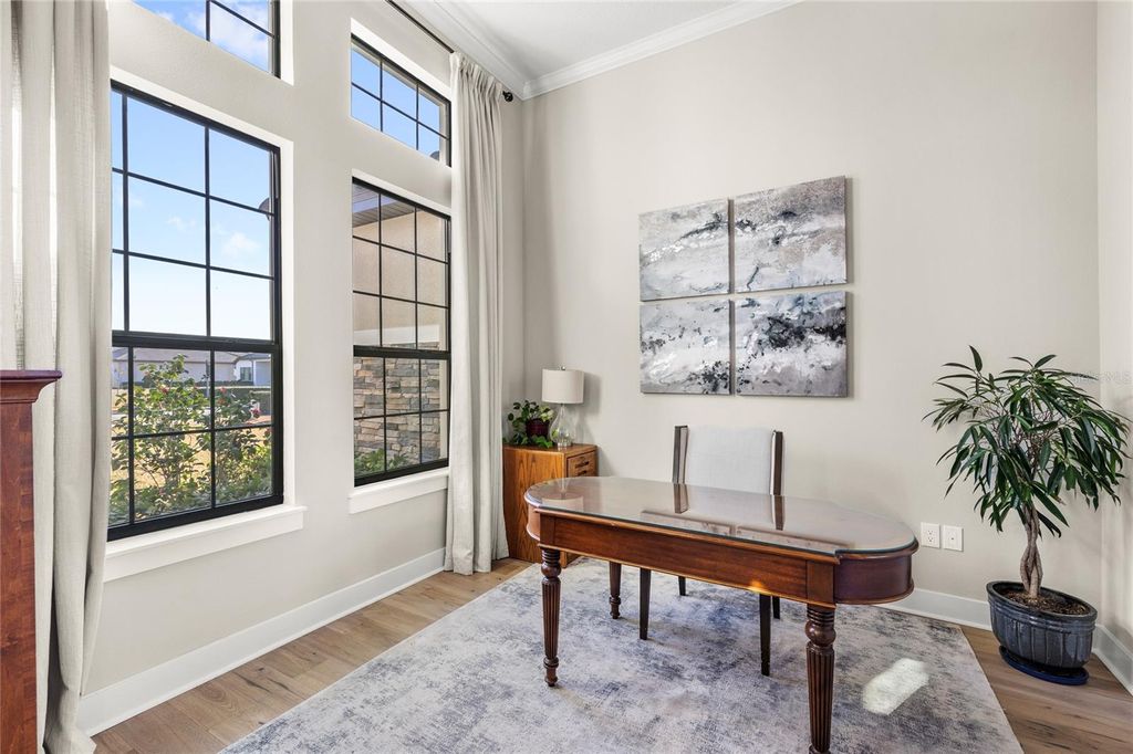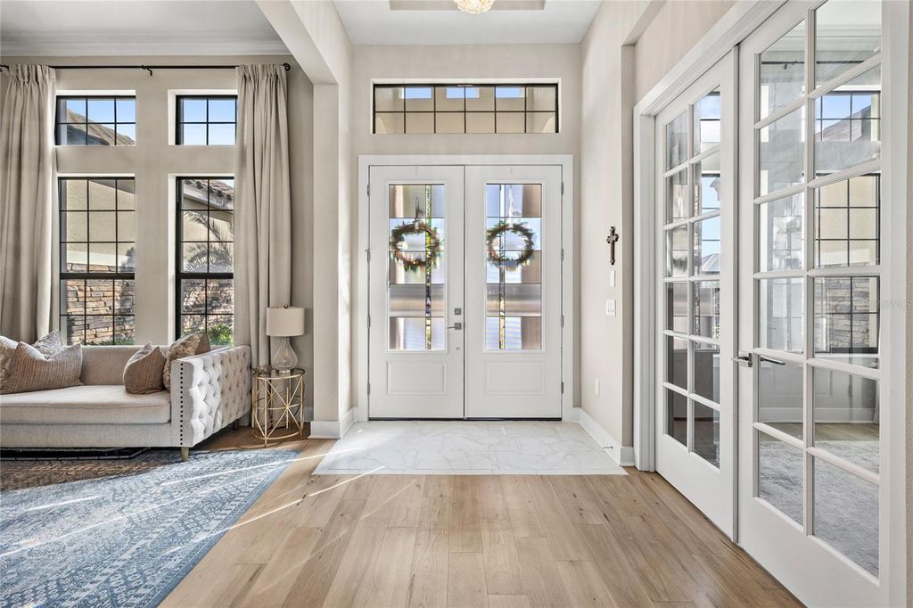 Welcome to 25620 Grandview Pointe! This home is custom-built, never-before-listed, and sits on a golf-front homesite in the gated community of RedTail. Situated on over half an acre with sweeping views of the 5th and 10th holes, this home features incredible finishes and a prime cul-de-sac location. Inside, you are greeted with 12-ft ceilings and 14-ft tray details, 8-ft doors, custom lighting, and detailed trim. All of the features are complemented by upgraded hardwood flooring and floor-to-ceiling windows that fill the home with natural light. The 3-way split floor plan offers 4 spacious bedrooms, 4 full bathrooms, a dedicated office, and a media room. The gourmet kitchen features a unique curved island, timeless wood cabinetry, upgraded quartz countertops, stainless steel appliances, upgraded gas cooktop, and a butler's pantry. This home also offers a 4-car garage, a stand out feature, which is rare in the RedTail community. The garage includes taller doors and high ceilings for easy storage of vehicles and equipment. The rear of the home includes a large lanai overlooking the golf course, offering direct sunset views and privacy. The golf cart path is set far back from the rear of the home, unlike many homesites in the community. The lot is oversized, flat and offers plenty of space for a future pool. RedTail offers an incredible lifestyle and location. Located only minutes from the 429 Expressway, just 15 minutes to Downtown Mount Dora, and with the Wekiva Parkway extension fully open, commuting to Lake Mary and I-4 takes only 15 minutes. Don't miss your opportunity to own this luxury RedTail estate with a golf course views, an oversized homesite and a private cul-de-sac location. Call today to schedule your private tour.