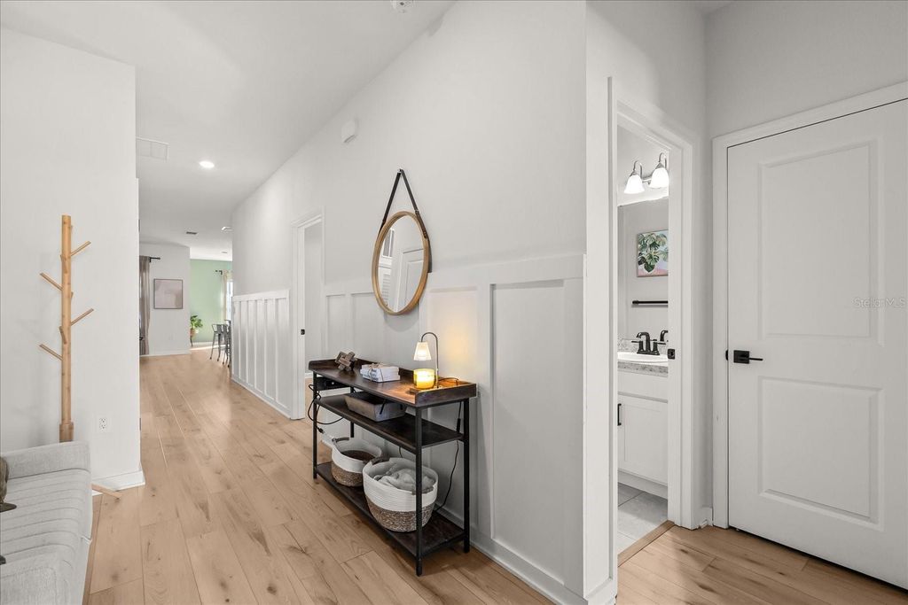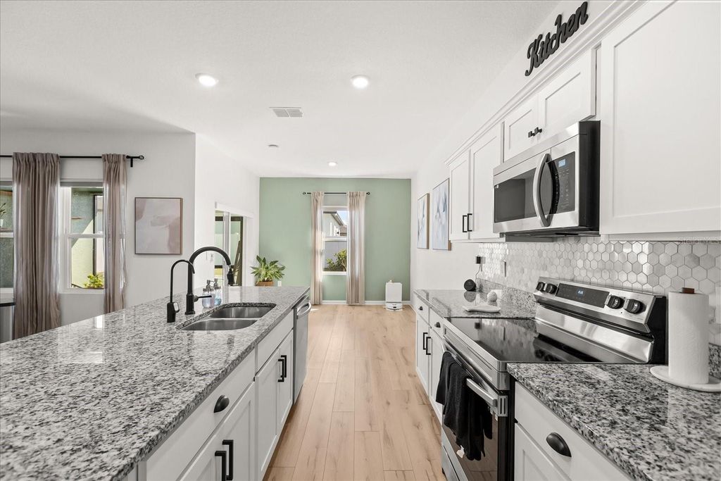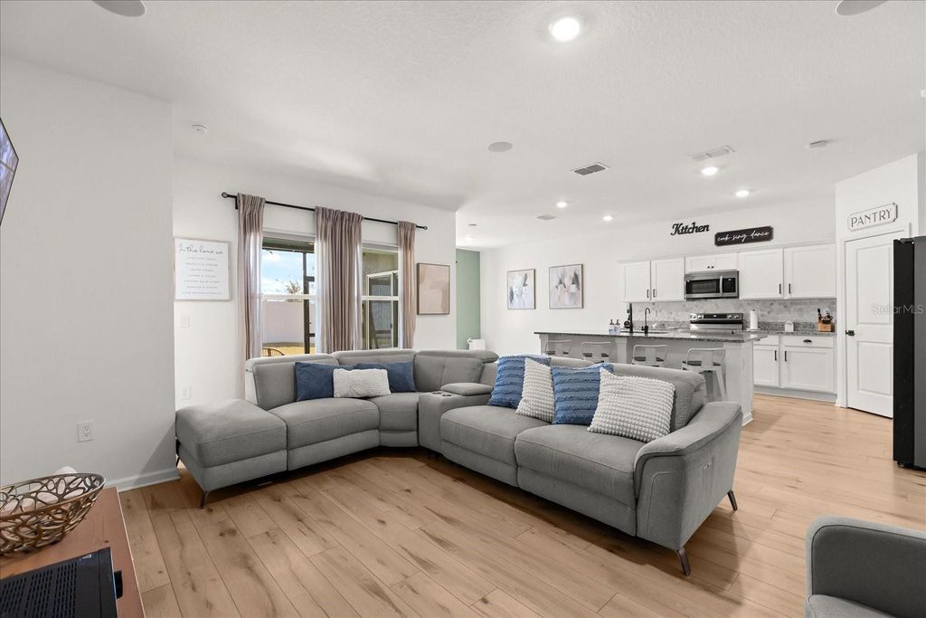 Welcome to this beautifully designed 2023 Starlight home nestled in the heart of Minneola. Offering 1,769 square feet of thoughtfully crafted living space, this single-story residence features 3 spacious bedrooms, 2 full bathrooms, and a dedicated office"”perfect for working from home or creating a quiet retreat. Built in 2023, the home blends modern style with everyday comfort in a desirable, peaceful neighborhood. Step inside to an inviting open-concept layout with a split floor plan that provides both functionality and privacy. Luxury vinyl flooring flows seamlessly throughout the entire home, enhancing its modern appeal and easy maintenance. The spacious living room is pre-wired with surround sound, making it ideal for entertaining or enjoying cozy nights in. The open kitchen and living areas create the perfect setting for gatherings, while the two-car garage adds convenience and extra storage. Out back, you'll find a large backyard featuring an expansive paved area"”perfect for outdoor dining, entertaining, or simply relaxing in your own private space. With its beautiful setting, quiet surroundings, and contemporary features, this exceptional home offers the perfect balance of style, comfort, and location.