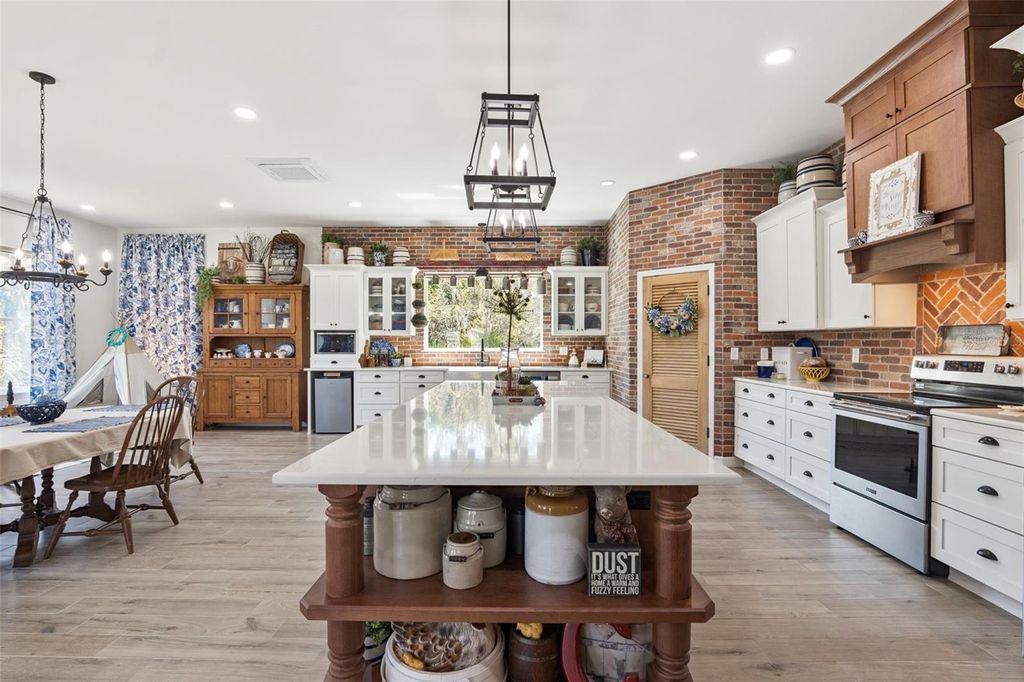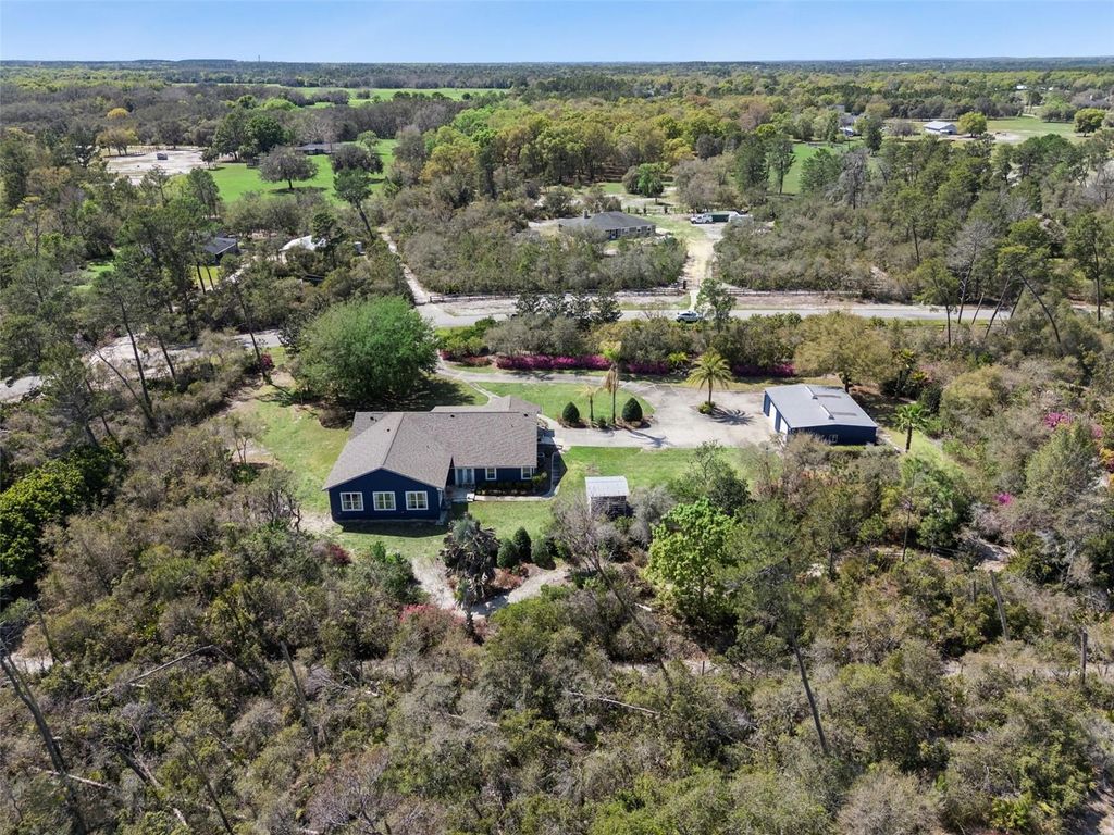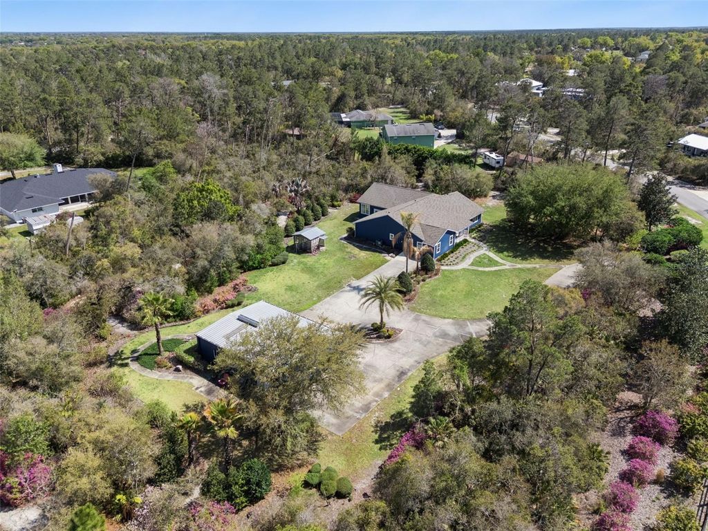 Welcome to this truly exceptional estate where thoughtful design, modern updates, and peaceful outdoor spaces come together perfectly. Tucked away on 2.24 beautifully landscaped, park-like acres in Eustis, this nearly 3,600-square-foot residence offers a rare mix of space, privacy, and quality renovations"”all with a subtle country feel to welcome you home. Fully transformed in 2023, this home was redesigned and expanded, for both style and functionality. Inside, you'll find an expansive-open concept layout highlighted by a stunning 900-square-foot great room that seamlessly combines the kitchen and living space"”perfect for hosting friends and everyday living. Durable, wood-look tile runs throughout the entire home for a clean, cohesive foundation. The brand-new kitchen is the heart of the home, featuring striking brick walls that add texture and charm. With updated 2023 appliances, a large prep island, and a walk-in pantry, it's built for real life. Quartzite countertops offer a high-end finish that's also durable and low-maintenance. The same quartzite surfaces flow from the kitchen into the fully renovated bathrooms, tying the design together seamlessly. You'll also notice plenty of smart storage tucked away throughout the house to keep things organized. A split floor plan ensures privacy, with three large bedrooms and three and a half bathrooms, all redone with beautiful materials and quality craftsmanship. Additional living spaces include a dedicated office, dedicated dining area, and an inviting living room"”offering flexibility for any lifestyle. Step outside and experience your own private retreat. The grounds are meticulously maintained with lush landscaping, shaded walking paths and a peaceful, park-like setting that enhances the home's quiet, country-inspired ambiance. A circular driveway provides ample parking and a great first impression. Car enthusiasts, hobbyists, or business owners will appreciate the impressive 30x40 outbuilding, complete with electricity and space to accommodate up to eight vehicles"”perfect for a workshop, storage, or garage use. This home is as practical as it is beautiful, featuring major system upgrades including a 2021 roof, 2022 AC, two tankless water heaters, all-new PVC plumbing, and fresh interior and exterior paint completed in 2023. Every inch reflects pride of ownership and meticulous care. A rare opportunity to own a fully renovated, move-in-ready estate with acreage, modern amenities, and timeless appeal"”this property truly stands apart.