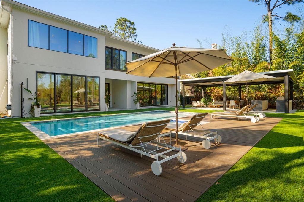 Luxury Custom Home in Bella Collina - Modern Comfort Meets Resort-Style Living Welcome to a truly one-of-a-kind residence in the exclusive community of Bella Collina. This stunning home combines modern design, warmth, and wellness-focused living, creating an environment that is both sophisticated and incredibly inviting. From the moment you enter, you are welcomed by abundant natural light flowing through expansive windows and a refined interior finished with beautiful oak wood paneling throughout the home. Indirect LED lighting has been thoughtfully integrated into the panels, creating a warm and cozy ambiance"”especially magical in the evenings. The main living space features an elegant fireplace that anchors the home and adds a perfect touch of comfort for relaxing nights. Designed for both everyday living and entertaining, the home offers a spacious gourmet kitchen complemented by two large pantries"”one dedicated to food storage and another for dishes, cutlery, and kitchen organization"”providing exceptional functionality and storage. A dedicated wellness area elevates the home into a private retreat, featuring a fully equipped gym, infrared sauna, and cold plunge, allowing you to maintain a complete health and recovery routine without ever leaving the house. The primary suite is designed as a true sanctuary. In addition to its spacious layout and custom walk-in closet built for optimal organization of clothing, shoes, and accessories, the bedroom features red ambient lighting designed to support natural melatonin production at night, creating an ideal sleep environment focused on recovery and well-being. Step outside into your resort-style backyard, where you'll find a heated pool and spa surrounded by lush green space. The outdoor BBQ area is beautifully designed and exceptionally well ventilated, making it perfect for gatherings and outdoor dining year-round. The expansive backyard also features a private soccer field, offering a rare and incredible space for recreation, family activities, and outdoor fun. The home offers five bedrooms, all with private en-suite bathrooms and walk-in closets, ensuring comfort and privacy for everyone. One of the bedrooms is currently designed as a home office but can easily be converted back into a bedroom if desired. Additional highlights include: * Custom-designed wine cellar with ambient lighting * Dedicated shake/supplement station with countertop and outlets * Beautiful oak wood details throughout the entire home * Indirect lighting creating a warm and elegant atmosphere * Guest suite conveniently located on the first floor * Custom closets in every bedroom * Spacious green outdoor areas * Heated pool and spa * Private soccer field * Impeccably maintained, like-new condition This property is truly unique in Bella Collina, offering a rare combination of elegance, comfort, wellness, and lifestyle. A home designed not just to live in"”but to experience.