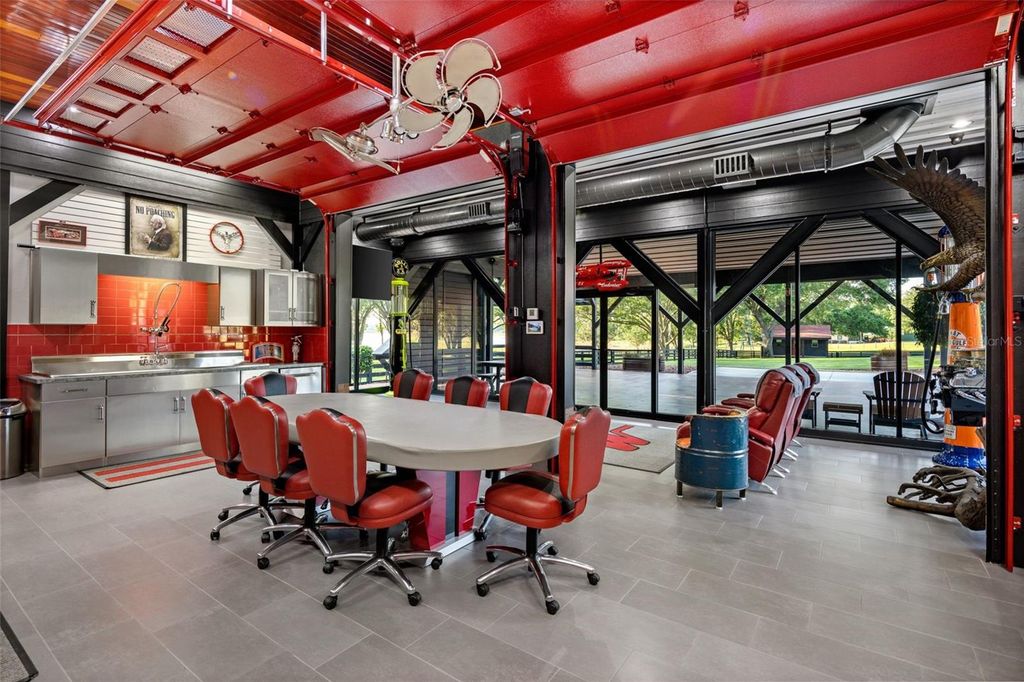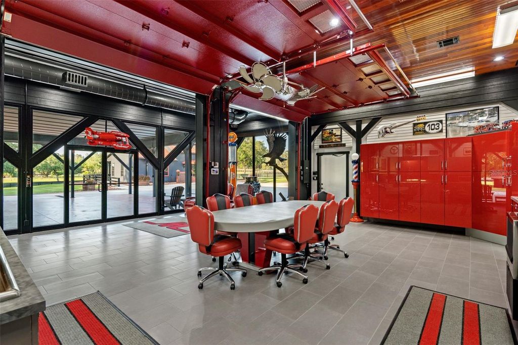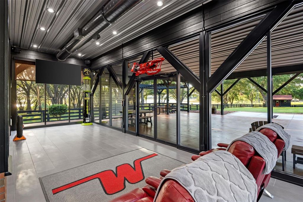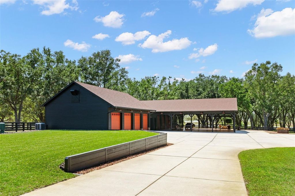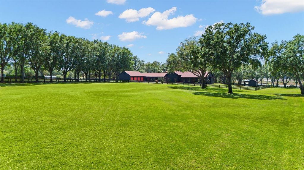 Encompassing five pristine acres, this exceptional compound offers a rare blend of privacy, craftsmanship, and refined outdoor living. Framed by mature oaks and approached by a picturesque, tree-lined drive, the property unfolds as a secluded retreat designed for casual entertaining and boundless enjoyment of serious hobbies and collections. At the heart is a 3,041-square-foot farmhouse rich in warmth and architectural character, offering 3 bedrooms, 2.5 bathrooms, a flex room, and a second-floor bonus space. Thoughtfully designed for function and lifestyle, the estate is further enhanced by a detached lake side retreat"”featuring a 4-car garage with 13-foot doors, multiple vehicle lifts, epoxy floors, and an integrated compressor system. An air conditioned 2nd story storage area is accessed by elevator. The commercial kitchen, comfortable gathering area, and private lounge create a truly unique environment for entertaining and displaying prized possessions. Additional features include a 6-car pavilion and BBQ pergola with a stone fire pit. Structures are versatile - offering endless possibilities for collectors, creatives, or future expansion. The sweeping setting captures serene lake and sunset views, while a whole-property generator and security system provide comfort and peace of mind. With ample room to expand, the existing residence can serve as a guest home while a new primary estate is brought to life. Zoned for horses and ideally located just minutes from Hamlin Town Center, with convenient access to SR-429, Walt Disney World, and downtown Winter Garden, this is a rare opportunity to create a true legacy compound. All TV's included. Furnishings and other items may be available to purchase. See attachments for Feature Sheet.