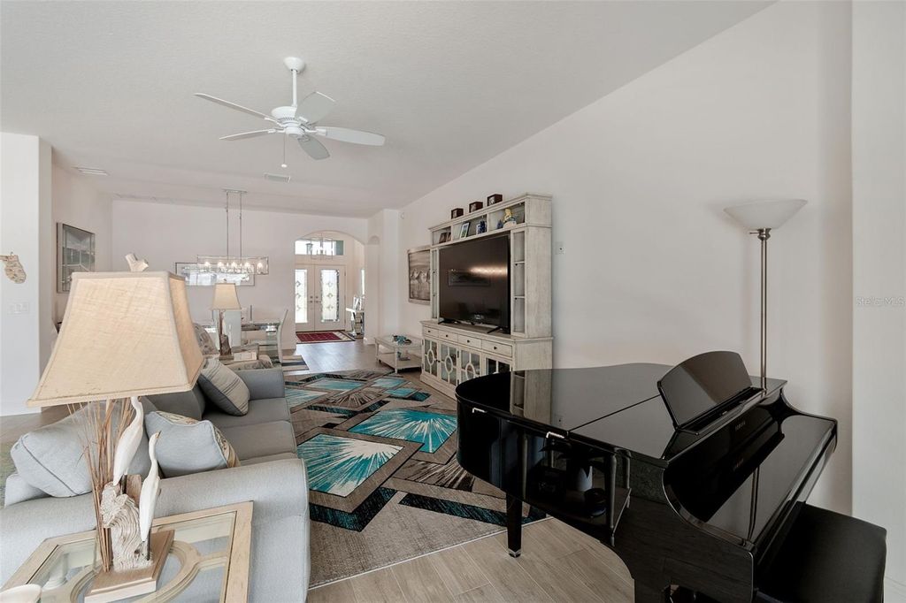 Experience the Essence of Living the Dream in this Beautiful Designer 4 Bedroom 2 Bath "Ivy" in the Village of Newell. This is the Best location in the villages with walking distance to all your activities and minutes away from the new Eastport area and Sawgrass square. This home sits on .22 acres of property with an Extended Garage, Lanai, and Bedrooms. The large open floor plan is very Spacious with 10 Ft. Ceilings and Arched Entryways. The extra large Laundry room has built in cupboards and a Desk area that is Computer friendly and Includes the Washer and Dryer. The Kitchen has Smart Stainless Steel Appliances, Under and Over Cupboard Lighting, Beautiful Tile Backsplash and Elegant Quartz Countertops. The Sliding Stacking Doors open up to a Sparkling Tropical Oasis which consists of a Beautiful built in Pool and Spa overlooking a Large Pond with plenty of Wildlife. You will enjoy spending time on the large lanai with a brand new Rubber Floor and Hurricane Shades. The master bedroom gives you a Fantastic View of the Lanai and Pond. Inspired Closets are provided throughout the home. This Perfectly Landscaped Home with Double Door Entryway will make Everyone feel Welcome that comes through the door. Don't miss out on this Hidden Treasure.