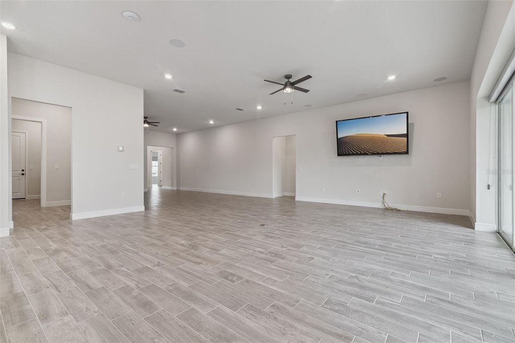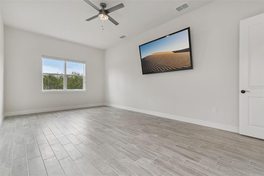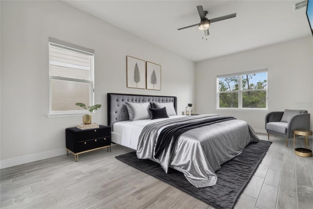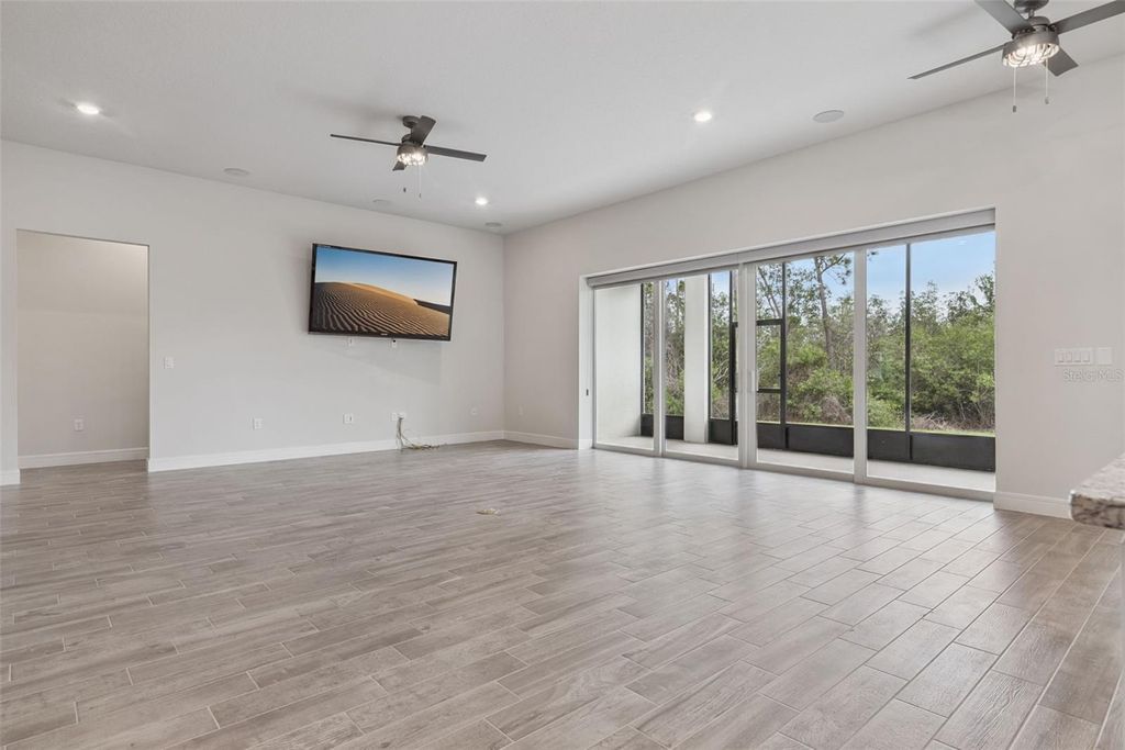 One or more photo(s) has been virtually staged. Some photos have been virtually staged. Stunning upgraded single-story home on a wide estate lot with a rear view of pristine conservation land. Let's start with an open floor plan with all the modern conveniences waiting for you...including... Smart home phoenix system featuring thermostat, garage door, and front door controls from your phone. Twelve-foot ceilings, 17" ceramic tile floors, Large gourmet Kitchen with upgrades like granite countertops, walk-in pantry & 42" soft close cabinets with under cabinet lighting. California Closet systems in all bedrooms & Pantry, Hunter Douglas Blinds, 5.1 Surround sound audio system and the seller is leaving 2 Sharp Aquos 80-inch Tv's with full HD 1080p, that are professionally mounted with an articulating mount in the main gathering room and primary suite. Hideaway sliding doors to a fully screened patio overlooking the conservation preserve. 20 AMP power in the two-car garage with extra lighting and a soffit holiday light package, extended paver driveway, custom ceiling fans in all rooms and a great deal more. Step inside this stately home and immediately feel the open vibe with a view to the wilderness out back. The open floor plan welcomes you to the main area of the home with the spacious great room, opening to your family room for the perfect place to relax. The primary suite features and en-suite bathroom with two walk-in closets, dual sinks, quartz topped vanity and a frameless glass shower. Four additional bedrooms with 2 ½ baths. There is a separate laundry room and huge storage area. Don't miss the en-suite bed & bath just behind the kitchen towards the garage entry, a perfect spot for your guests when they come to visit. The expansive 35-foot screened covered lanai is accessible from the family gathering room and opens fully thanks to the pocket sliding doors - providing effortless indoor / outdoor entertaining space. There are connections for a future summer kitchen on the lanai and plenty of room for you to build a dream pool. Enjoy the Resort style amenities, including a huge clubhouse with catering kitchen, covered patio and fireplace, multi-purpose rooms available to rent for private functions, a zero-entry pool, lap pool, dog park, splash pad, 24 hour access fitness center, continuous 8 foot walking trail, community activity director and a private gated entry with resident-only kayak launch to John's lake. You can't miss this opportunity to own in the estates section of Serenoa lakes as these homes are not available often, schedule your visit today.