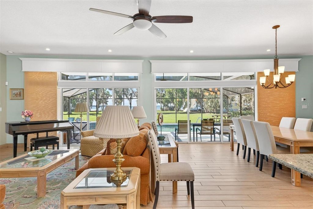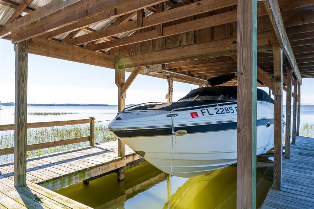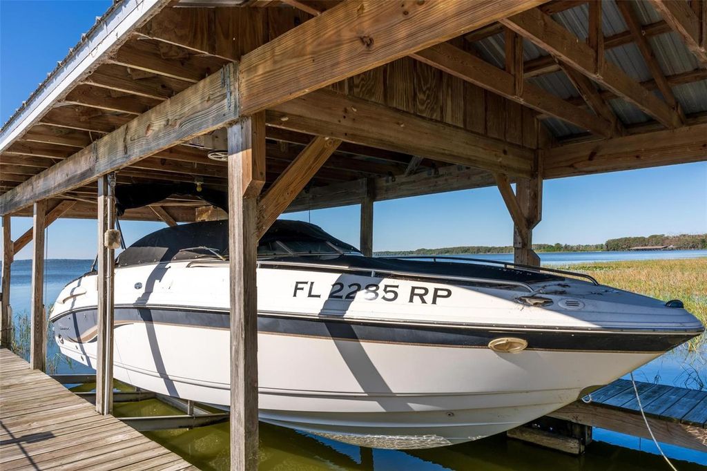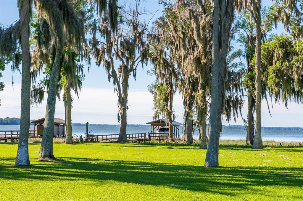 Welcome to 10220 Bumblebee Lane in Leesburg, a truly one-of-a-kind lakefront estate on the legendary Harris Chain of Lakes where luxury, versatility, and lifestyle collide on a sprawling 1.35-acre property with a 164' dock fully equipped with power, water, lighting, and a mechanical lift setting the tone for unforgettable days and nights on the water before you ever step inside; once you do, the home immediately captivates with breathtaking panoramic views through dual 12' accordion sliders that open to the pool and lake beyond, showcasing a completely renovated 34' x 25' open-concept living, dining, and kitchen space with soaring cathedral ceilings and an entertainer's dream kitchen featuring an oversized island, farmhouse sink, premium KitchenAid appliances, and even two dishwashers for those lively gatherings, while the thoughtfully designed layout offers three bedrooms downstairs plus a private approximately 725 sq ft upstairs in-law suite with its own exterior and interior entrances, kitchenette, washer/dryer combo, and full bath, perfect for multigenerational living, guests, or income potential, along with a hidden 4' x 30' walkable storage corridor cleverly tucked behind the walls; the primary suite delivers a true retreat with French doors to the pool, dual walk-in closets, split granite vanities, a jacuzzi tub, and an accessible walk-in shower, complemented by wide 36" doorways, spacious hallways, accessible bathrooms, and a seamless garage entry all designed for ease and comfort, while outside you'll also find a dedicated full bath for pool and lake days, a powered 12x12 shed, and a 40' x 10' storage container with ventilation, skylight, and industrial storage; the expansive grounds provide ample room for RVs, boats, trailers, future additions, or simply enjoying the privacy and space rarely found on the Chain, with mature landscaping and open skies creating a peaceful retreat just minutes from town, and when it comes to lifestyle, boating from your backyard opens the door to iconic destinations like the scenic Dora Canal, waterfront dining in Tavares at Tiki West Raw Bar & Grill or Ironworks Steakhouse, or an afternoon in charming Mount Dora with stops at The Goblin Market or Pisces Rising for dining and live entertainment, plus convenient access to Orlando, world-renowned attractions, and Florida's beautiful east and west coast beaches, making this not just a home but a gateway to the ultimate Central Florida lake life"”opportunities like this are rare, so if you've been dreaming of owning on the Chain, this is your moment.
