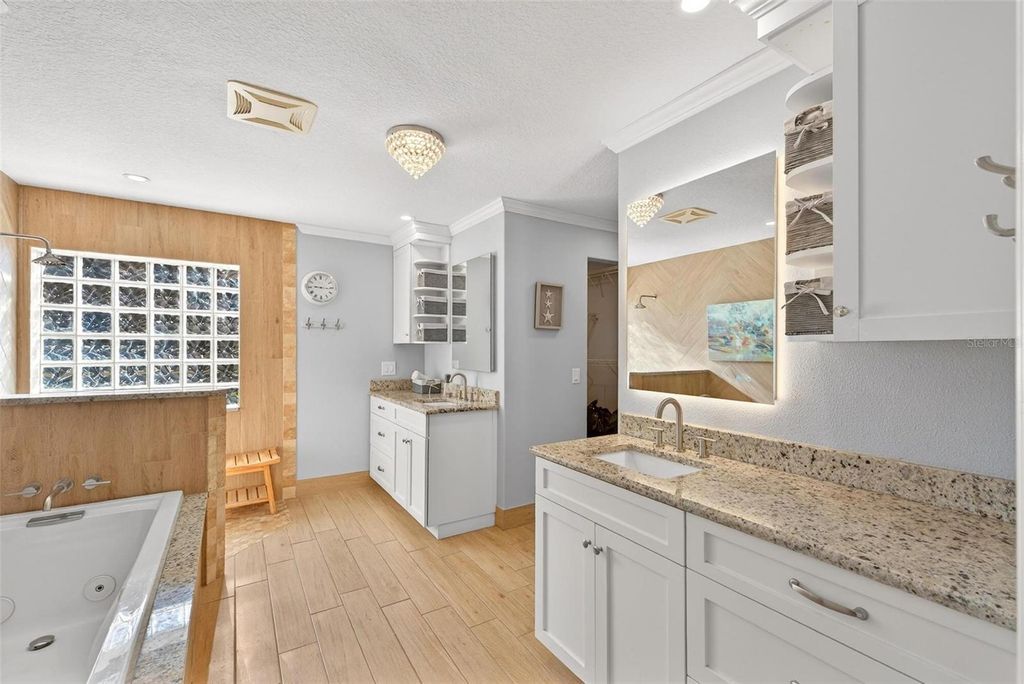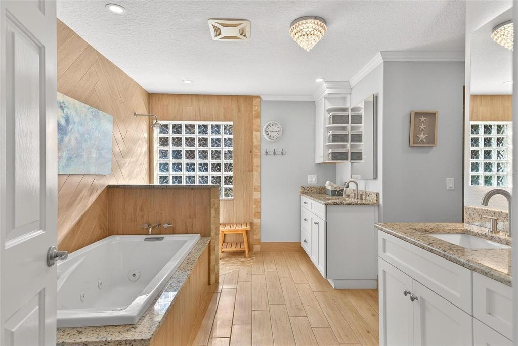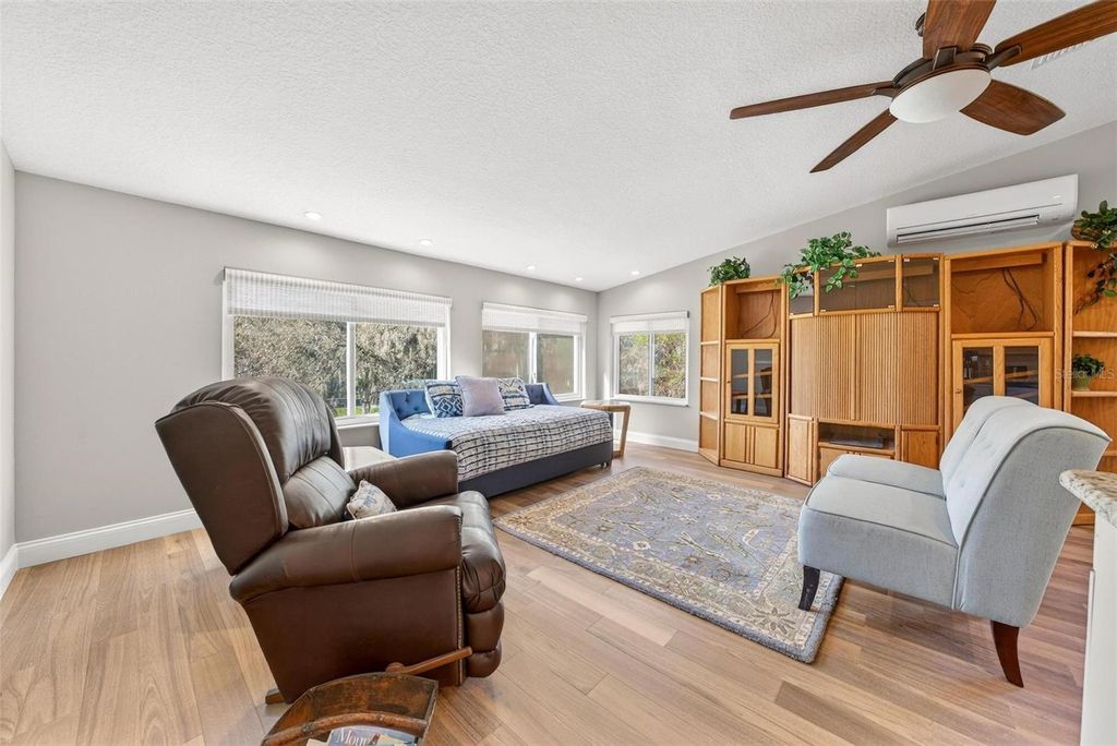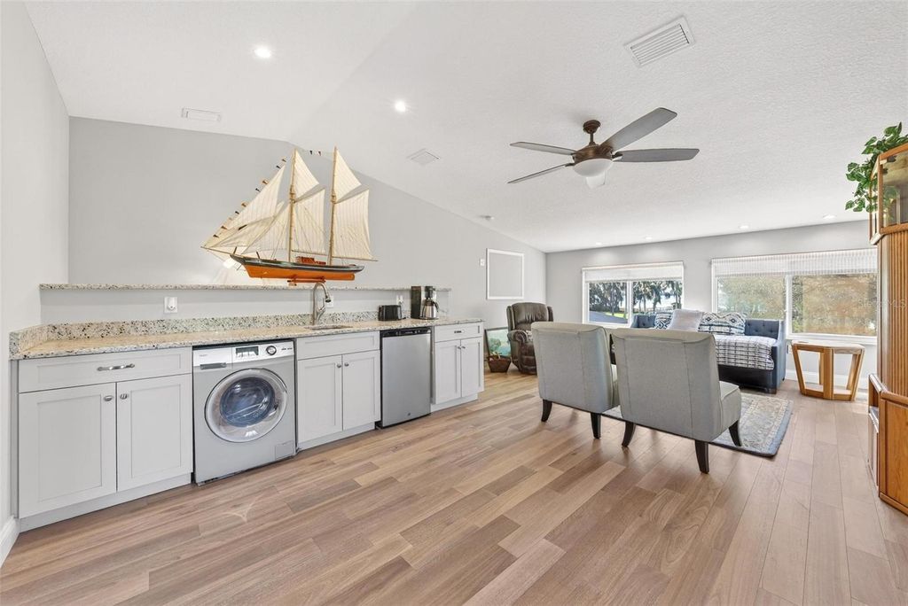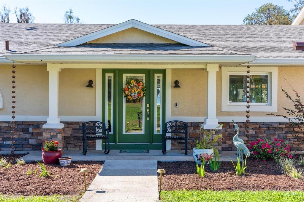 Welcome to 10220 Bumblebee Lane in Leesburg, a truly one-of-a-kind lakefront estate on the legendary Harris Chain of Lakes where luxury, versatility, and lifestyle collide on a sprawling 1.35-acre property with a 164' dock fully equipped with power, water, lighting, and a mechanical lift setting the tone for unforgettable days and nights on the water before you ever step inside; once you do, the home immediately captivates with breathtaking panoramic views through dual 12' accordion sliders that open to the pool and lake beyond, showcasing a completely renovated 34' x 25' open-concept living, dining, and kitchen space with soaring cathedral ceilings and an entertainer's dream kitchen featuring an oversized island, farmhouse sink, premium KitchenAid appliances, and even two dishwashers for those lively gatherings, while the thoughtfully designed layout offers three bedrooms downstairs plus a private approximately 725 sq ft upstairs in-law suite with its own exterior and interior entrances, kitchenette, washer/dryer combo, and full bath, perfect for multigenerational living, guests, or income potential, along with a hidden 4' x 30' walkable storage corridor cleverly tucked behind the walls; the primary suite delivers a true retreat with French doors to the pool, dual walk-in closets, split granite vanities, a jacuzzi tub, and an accessible walk-in shower, complemented by wide 36" doorways, spacious hallways, accessible bathrooms, and a seamless garage entry all designed for ease and comfort, while outside you'll also find a dedicated full bath for pool and lake days, a powered 12x12 shed, and a 40' x 10' storage container with ventilation, skylight, and industrial storage; the expansive grounds provide ample room for RVs, boats, trailers, future additions, or simply enjoying the privacy and space rarely found on the Chain, with mature landscaping and open skies creating a peaceful retreat just minutes from town, and when it comes to lifestyle, boating from your backyard opens the door to iconic destinations like the scenic Dora Canal, waterfront dining in Tavares at Tiki West Raw Bar & Grill or Ironworks Steakhouse, or an afternoon in charming Mount Dora with stops at The Goblin Market or Pisces Rising for dining and live entertainment, plus convenient access to Orlando, world-renowned attractions, and Florida's beautiful east and west coast beaches, making this not just a home but a gateway to the ultimate Central Florida lake life"”opportunities like this are rare, so if you've been dreaming of owning on the Chain, this is your moment.