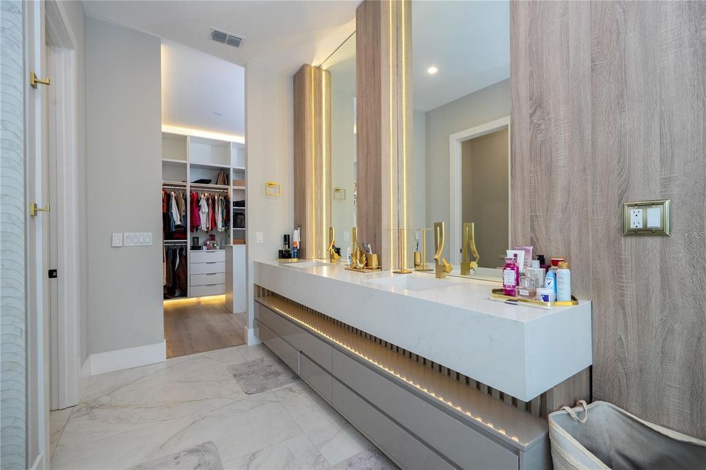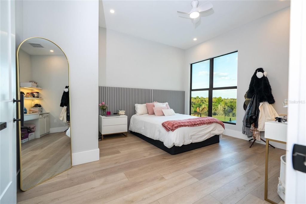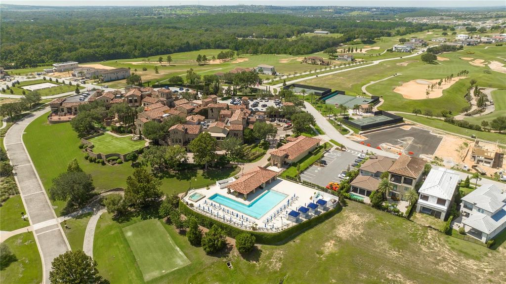 Experience an elevated standard of living at The Siena, a custom luxury residence located in Bella Collina, one of Central Florida's most prestigious private, guard-gated communities. Ideally positioned just a short walk from the iconic 75,000 sq ft Tuscan-inspired clubhouse, this home offers access to world-class amenities, including a Nick Faldo-designed championship golf course, private lake access, and a lifestyle reserved for the most discerning homeowners. This custom-built home is a true statement of design and sophistication, featuring a grand 12-foot entry door and soaring 12-foot ceilings that immediately set the tone for refined luxury. The open-concept layout is both impressive and functional, enhanced by custom wood cabinetry, designer lighting, and premium finishes throughout. At the heart of the home, the gourmet kitchen delivers both style and performance, complete with high-end appliances, an oversized island, and seamless flow into expansive living and entertaining spaces. Each bedroom is designed as a private retreat, offering en-suite bathrooms and walk-in closets, providing comfort, privacy, and an elevated everyday experience. The primary suite at The Siena redefines relaxation, featuring a spacious layout, spa-inspired bathroom, and a private balcony overlooking serene natural surroundings, perfect for quiet mornings and sunset evenings. Designed for effortless indoor-outdoor living, the backyard transforms into a private resort. Enjoy a heated pool and spa, covered lanai, fully equipped summer kitchen with barbecue, sink, and refrigerator, and a dedicated outdoor bathroom, all framed by peaceful golf course and nature views that enhance the sense of privacy and exclusivity. Modern luxury meets efficiency with hurricane impact windows, a private movie theater room, EV charging station, and solar panels, delivering both comfort and long-term value. Set within a 24-hour guard-gated community known for its beauty, security, and exclusivity, The Siena is more than a home, it is a lifestyle defined by elegance, privacy, and distinction.