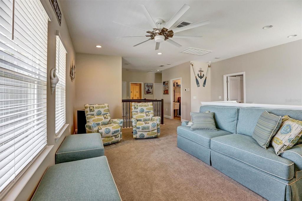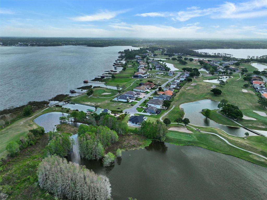 Welcome to 17610 Sawgrass Run. This almost 2900 SqFt home sits on Hole 7 of Deer Island Country Club, rated 24th in the country and sits between Lake Dora and Lake Beauclaire. Minutes from Disney and Shopping. This newly built, barely lived in, no flood insurance needed second home boasts all kinds of amenities. Located on a spacious executive lot, this home sits on a culdesac with an amazing view of Lake Dora from the front of the home. Just sit back in the 800 Sq Ft screened lanai and enjoy conversation with the golfers. At night, gorgeous sunsets are your view to the West. This is island living at its finest, quiet and peaceful. Inside the home, you will find a first floor Primary with a spacious bathroom and walk in closet. Enjoy your executive kitchen with plenty of work space with custom granite counter tops. Soft close cabinetry and an oversized island to entertain guests. The family room and kitchen flow seemlessly together. Sliding doors open up to an amazing covered lanai. On the first floor find all new manufactured hardwoods throughout and enjoy the beautiful sound system. Relax in your private office or den on the main floor and work while being entertained by the golfers. Upstairs relax in the island room while watching beautiful views of Lake Dora and the golf course. Amazing views from every window. 3 Bedrooms upstairs with an ensuite and separate bathroom. Outside be greeted with a side entrance garage, double wide drive way, extra wide sidewalks and Rainbird irrigation remote control system. An onsite well takes the place of county water for no large irrigation water bills. Totally energy efficient with minimal electric bills. Truly this home is a rare find sitting on a culdesac with breathtaking views from your front or backyard. Pickle Ball, Tennis, Golf, Club House Restaurant and Community Docks for boating. This community offers direct access to Florida's iconic Harris Chain of Lakes and these are just some of the things this area offers. Mount Dora is minutes away. Remember, no flood insurance needed!! Schedule to see the home soon.