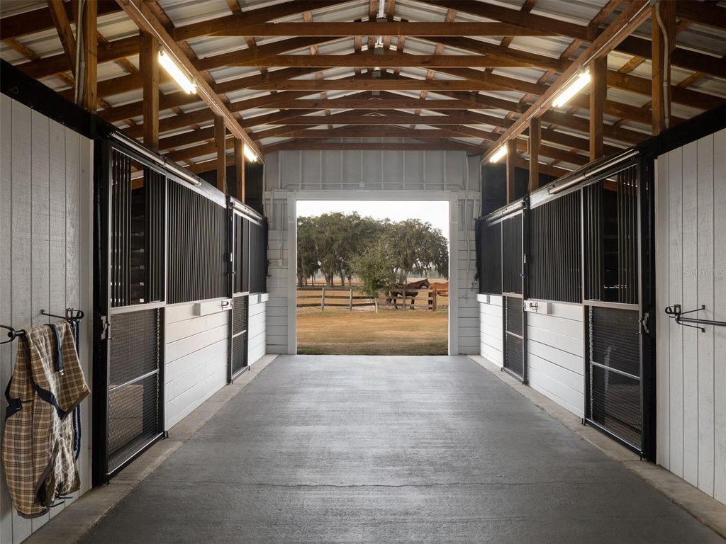 This 39.01-acre property in Ocala offers the perfect blend of tranquility and convenience, making it an ideal retreat for equestrian enthusiasts. Located just 10 minutes from both the World Equestrian Center and HITS, the property provides easy access to world-class equestrian events while maintaining a serene, quiet setting. The entire property is fully fenced, ensuring safety and security for both animals and residents. It features 8 paddocks and two turnout pens, all surrounded by mature oak trees that provide natural shade and privacy. The property also boasts deeded rights to a 3/4-mile professionally maintained thoroughbred training track and a 1-mile turf gallop, offering unparalleled access for training and exercise. For equine care, the property includes a well-maintained 8-stall center-aisle barn with sturdy wood frame construction, complete with a barn office, bathroom, tack room, wash rack, and feeding stations, as well as a separate storage shed for additional space. The custom-built home on the property features vaulted ceilings, elegant crown molding, and luxurious porcelain tile flooring throughout. With 3 spacious bedrooms, all ensuites, 3.5 bathrooms, and a bonus room perfect for an office or additional living space, this home is designed for comfort and style. The kitchen and living areas provide ample space for relaxation and entertaining, and the living room opens seamlessly to a covered back porch that extends the living space into the expansive backyard. A 3-car garage offers plenty of storage and parking space. Whether you're looking for a peaceful retreat or a property with exceptional equestrian amenities, this property offers the best of both worlds.