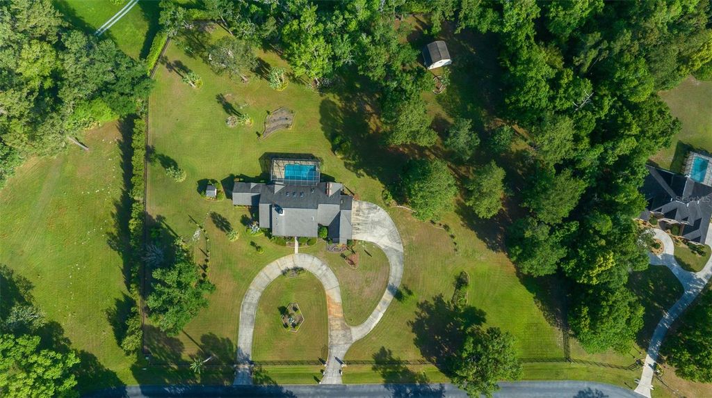 Nestled within the prestigious, gated community of Summit II, this 4.72-acre "Gentleman's Farm" offers the rare opportunity to secure a sprawling estate in one of Ocala's most sought-after locations. Built in 1987 and spanning an impressive 4,277 square feet, this residence is designed for those who value both grand-scale entertaining and the quiet comfort of a growing family. With a versatile layout offering up to five bedrooms and 3.5 bathrooms, the home is perfectly suited for a modern multi-generational living arrangement. The heart of the home is a chef's kitchen that balances high-end function with timeless style, featuring custom wood cabinetry, full-thickness Italian tile, and a premium Thermador 30-inch side-by-side refrigerator and freezer. A bright breakfast nook flows effortlessly from the kitchen, offering tranquil views of the sparkling, enclosed pool. For formal gatherings, the living room exudes a refined warmth, centered around a stunning copper fireplace and rich wood flooring. The private quarters are anchored by a stately master suite bathed in natural light. This sanctuary features vaulted ceilings and a spa-like bathroom complete with a soaking tub, walk-in shower, and dual vanities equipped with smart mirrors featuring integrated lighting and anti-fog technology. Storage is elevated to an art form with an expansive walk-in closet thoughtfully designed by California Closets. Beyond the master, you will find three spacious guest bedrooms, a dedicated den or office, and a large bonus room with endless possibilities for a home theater, gym, or studio. The lifestyle extends well beyond the interior walls. Functionality is key, from the large indoor laundry room with ample counter space to the three-car garage, which has been upgraded with a durable polyurea floor coating. For the equestrian or outdoor enthusiast, the property is a dream realized; located just 5.4 miles from Santos Trails and 6.2 miles from the Florida Horse Park, you are in the center of world-class recreation. The detached outbuilding offers a seamless path to housing your horses, with horse-friendly zoning already in place. While this home has been lovingly maintained and features several high-end modernizations, it has been thoughtfully priced to allow you to infuse your own style. This is a rare chance to invest in a prime estate, apply a little sweat equity to the cosmetic finishes, and watch your investment grow in a neighborhood known for its appreciating value. More than just a house, this is a canvas for your future and a place to create lasting memories.