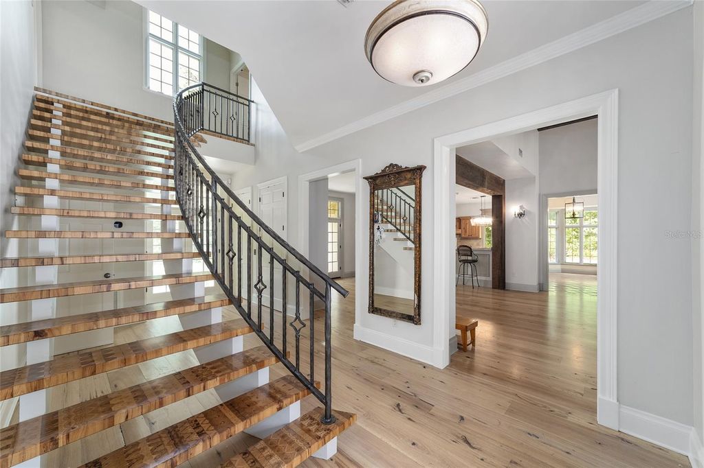 Welcome to your private estate in the distinguished community of Polo Lane! This beautifully appointed 4-bedroom, 5-bathroom residence is set on a sprawling 7-acre lot, offering the perfect blend of privacy, space, and luxury"”just minutes from Ocala's amenities. Enjoy the tranquility of wide-open living with the convenience of being close to town. Step inside to an inviting open floor plan filled with natural light and neutral finishes throughout. The heart of the home is a charming kitchen featuring character-rich terracotta tile, ample counter space, and seamless flow into the living and dining areas"”perfect for entertaining. The spacious primary suite is truly a retreat, complete with an additional attached room that provides flexible space for a sitting area, home office, or nursery"”all tucked away from the main areas of the home for added peace and privacy. Step out onto your private balcony to take in views of the serene backyard and pool. The en-suite bath is complemented by a large walk-in closet with custom built-ins. Each additional bedroom is generously sized with access to its own bathroom, offering comfort and privacy for family or guests. A large, well-equipped laundry room includes a sink, counters, and storage"”ideal for any busy household. Outdoors, your personal oasis awaits: a sparkling in-ground pool, mature trees, and an outdoor kitchen under a vine-wrapped pergola that exudes timeless charm and brings nature right to your backdoor. With 7 acres to enjoy, the lot offers ample distance from neighbors while still being part of an HOA community. Additional highlights include a 2-car garage, new windows and doors (2023), roof (2021), HVAC (2016), and water heater (2022). This is a rare opportunity to enjoy luxury living in a one-of-a-kind setting"”schedule your private showing today!