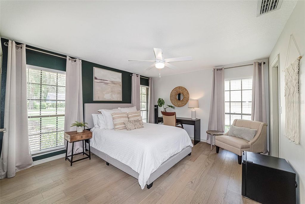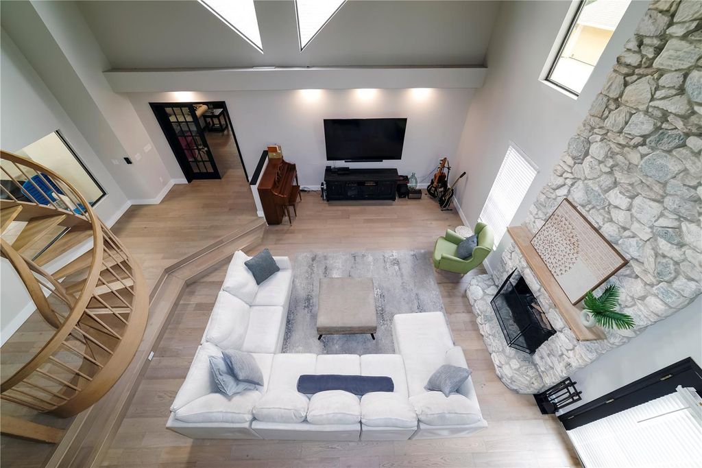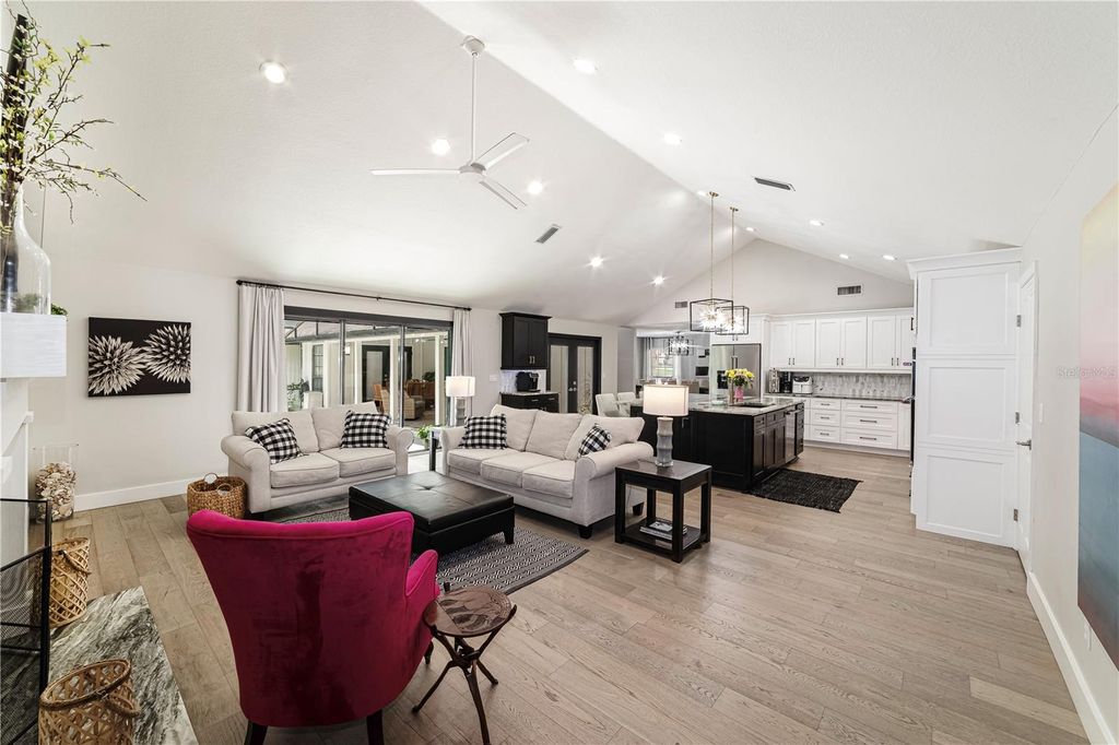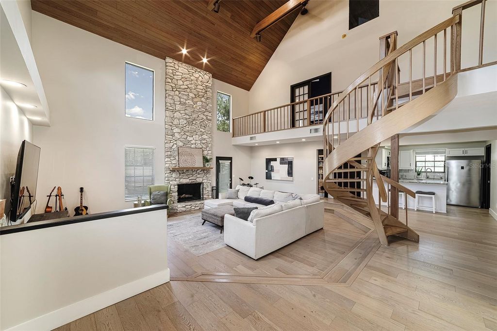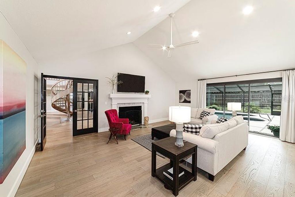 Beautiful pool home in the highly sought after Woodfield Neighborhood Area is ready for you to move in! This is a rare find for sure! Located on over 1/2 acre with 4550+ sq ft of living space, this home has room for everything. This completely renovated home boasts 4 bedrooms, 4 1/2 bathrooms, home office, 3 separate family/living spaces, 2 kitchens, in home gym and sauna, loft bedroom with additional mezzanine room, upstairs storage room, inground saltwater pool, outdoor shed, Generac generator, 2 gas fireplaces - the list goes on and on! Updates include 3 new ac units (2020), new gas line (2023), pool resurfaced (marcite - 2020), new roof (coming 2025), new flooring throughout (solid hardwood, marble, tile, waterproof backed carpet), all new cabinets, countertops and appliances (2020), new water heaters (2020), Generac generator serviced (2024), Lanai Rescreened (2021), new garage door (2024). Entertaining large gatherings of friends and family is a breeze with the 3 family/living areas, large pool with covered lanai and fenced backyard. Do not miss out on living in this stunning home in a super friendly neighborhood! It's all you could ever want! Make it yours today!