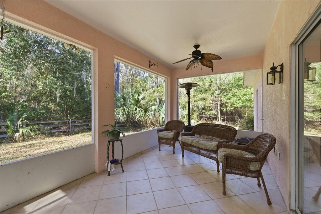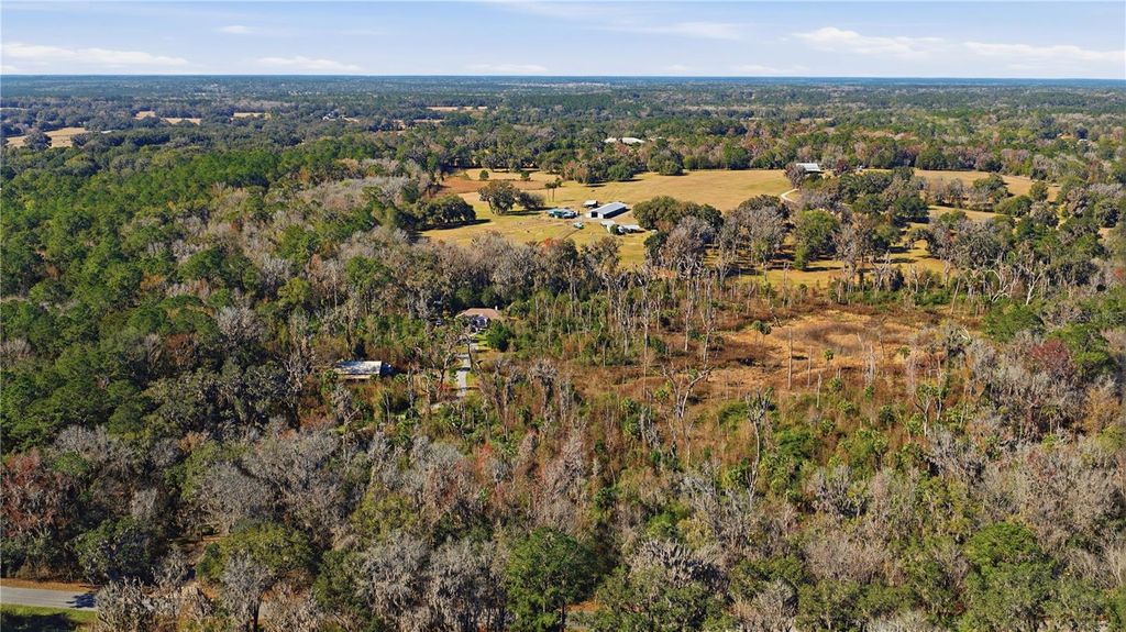 NEW ROOF Coming Soon - Buyer's Choice of Color! Welcome To Your Own Private Sanctuary! Discover the perfect blend of elegance, comfort, and natural beauty unfold across 10.29 acres of income-producing tree farm land. An adjacent 11.91-acre parcel is available for separate purchase. Located just 5 minutes from the Jockey Club and a 25-minute drive from Ocala and the World Equestrian Center. A gated entrance and picturesque winding road lead to this generous custom-built residence, nestled in a serene park-like and forest setting. Featuring; 3 Bed/2 Bath + den/office spanning over 2,500 heated sqft., open split plan, soaring ceilings, rich wood accents, cozy gas fireplace, laundry room, sideload 4-car garage, and spacious lanai/Florida room ideal for relaxing and entertaining. The equipped kitchen boasts granite counters, solid wood cabinetry, high-end appliances, and breakfast nook. The owner's suite offers a private retreat, garden tub, glass enclosed tile shower, separate vanities, and a walk-in closet. Outdoor features include; a 30x48 pole barn with a 360 sqft. unfinished barn office/loft, new 50-amp RV hookup, 20' bay to house your RV, boat, camper or travel trailer, 2-horse stall barn with paddocks, and lean to shed. Newly added whole house generator, water softener, storage/garden shed, and underground wiring enhance utility and efficiency to the property. Immerse yourself in your beautiful plantation overlooking your scattered large oaks, palm trees, and pines. Wander along scenic trails, enjoy the peaceful sounds of nature, and fascinating wildlife. There is a dry creek bed installed in the property designed to channel and manage rainwater runoff to prevent erosion and flooding and aid in water conservation. This property has the capacity to generate its own power via a commercial propane generator. It also has the potential to become a thriving hub of activity, offering endless opportunities for growth and success. Recent and pending upgrades include; NEW 2026 Roof, Whole House Generator 2022, and HVAC system 2021. This property isn't just a home; it's a lifestyle! Whether you're seeking an exclusive family compound, a retreat property, or a unique income-producing homestead, this enchanted haven delivers it all.