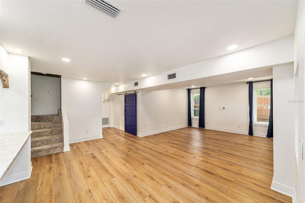 Dream no more"”welcome to your own 1+ acre lakefront retreat on the pristine shores of private Pegram Lake, a 90-acre spring-fed gem. This residence, the very first home ever built on the lake, has been completely reimagined"”renovated down to the studs. Every detail has been thoughtfully designed, blending luxury finishes with the natural beauty of Florida living. Here, life on the water is effortless"”enjoy boating, jet skiing, fishing, or simply relaxing along your own shoreline. Across the lake, a private island adds to the charm of this natural oasis. The lake is also a sanctuary for Florida's native wildlife; it's not uncommon to see graceful sandhill cranes, herons, and geese migrating along the shoreline, creating a peaceful and picturesque backdrop. The grounds feature a lovely pollinator garden, perfect for cultivating your favorite plants or simply enjoying the serenity of the outdoors. The gourmet kitchen is a showstopper, boasting exotic granite countertops, custom cabinetry, custom farmhouse sink and a stone-accented fireplace. A spacious island provides bar seating, while the open dining area features a built-in butler's cabinet"”all overlooking breathtaking lake views. The spa-inspired main-level bath offers a glass shower and freestanding tub with barn-door entry. An enclosed Florida room under A/C flows seamlessly to the lakeside porch, while upstairs you'll find three bedrooms, a second fully renovated bath, and even a second kitchen"”making this home an ideal AirBnB or multi-generational retreat. Rental potential is outstanding, with nightly rates of $250-$300 or $1,500-$1,800 per week. This is more than a home"”it's a lifestyle, a sanctuary, and an investment opportunity all in one. Bring your family, friends, or guests and experience the rare beauty of Florida lakefront living.