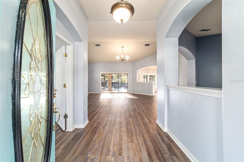 Under contract-accepting backup offers. Contemporary Pool Home with Exceptional Outdoor Living Discover the perfect blend of indoor comfort and outdoor luxury in this three-bedroom, two-bath home with a bright open floor plan. At the heart of the home is a spacious kitchen featuring rich wood cabinetry, granite countertops, and a welcoming breakfast nook, complemented by a separate formal dining room and a versatile bonus room ideal for a study or home office. The true showpiece is the backyard retreat: a sparkling screen-enclosed pool surrounded by an expansive brick-paver deck and a large covered patio"”perfect for entertaining, relaxing, or enjoying sunny afternoons year-round. Practical touches abound, including an inside laundry room with washer and dryer and a large additional storage room inside the two-car garage, providing plenty of space to keep everything organized. The private owner's suite offers a garden tub, dual vanities, and his-and-hers walk-in closets, while plantation shutters throughout add timeless elegance and energy efficiency. This move-in ready property is designed for seamless indoor-outdoor living and unforgettable gatherings.