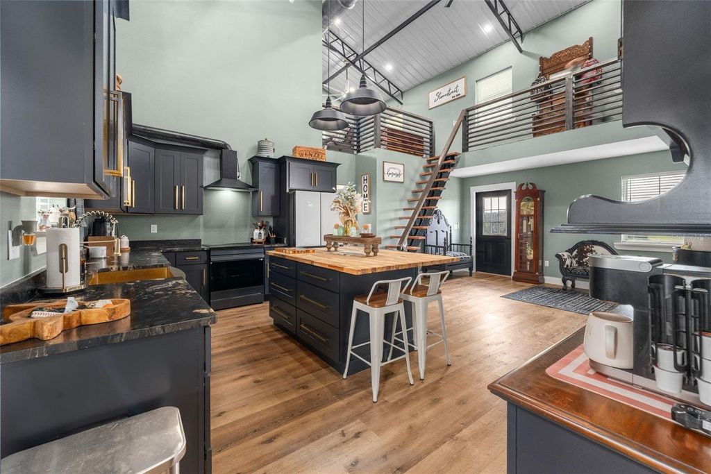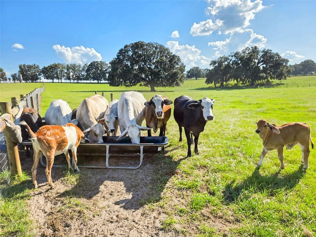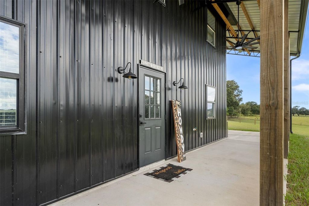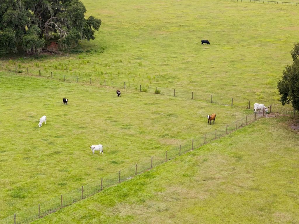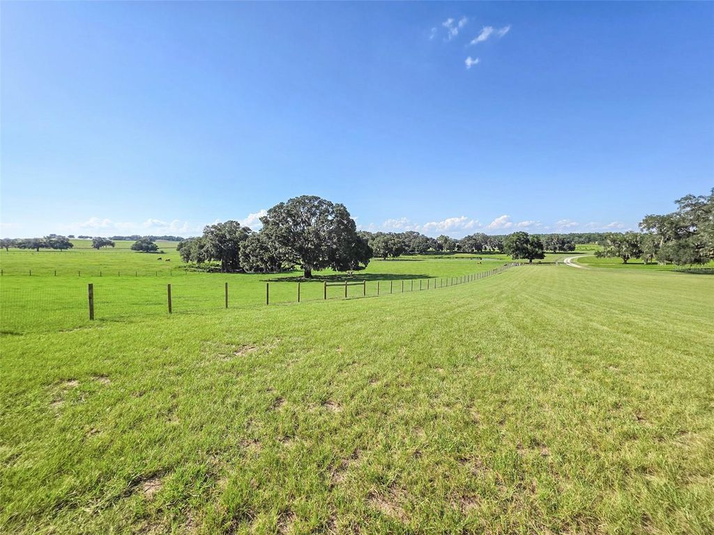 Welcome to your private farm retreat in Morriston, Florida. This custom, newly built 3-bedroom, 2-bath home is set on 19.34 acres of fully fenced pastureland and offers a rare blend of functionality, style, and peaceful rural living. With approximately 3,840 square feet under roof, the residence includes expansive covered outdoor living space"”perfect for relaxing, entertaining, or enjoying the quiet beauty of the countryside. Designed with a modern industrial aesthetic, the interior features vaulted ceilings with exposed steel trusses, an open-concept layout, and carefully chosen finishes that blend warmth with bold architectural detail. The kitchen is outfitted with black cabinetry, gold hardware, a butcher block island, and a farmhouse sink. A custom staircase with steel railings leads to a versatile loft space that can also be accessed by a separate outdoor staircase, offering flexible use as a guest area, office, or bonus room. The main living areas feature wood-style flooring and large windows for natural light. Bathrooms are thoughtfully designed with tiled walk-in showers and modern fixtures, and the laundry area includes herringbone brick flooring and built-in storage. A separate 40x60 pole barn with a 20x60 lean-to provides ample space for equipment, trailers, or future stalls. The acreage includes open, cross-fenced pastures and a private pond stocked with fish. Nine cows and one goat may be included in the sale, making this a truly turnkey farm. Located just minutes from Williston and a short drive to Ocala, the World Equestrian Center, and popular trailheads, this unique property is ideal for anyone looking for a self-sufficient lifestyle with modern comfort and rural charm"”no HOA and agriculture zoning in place.