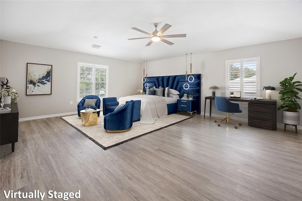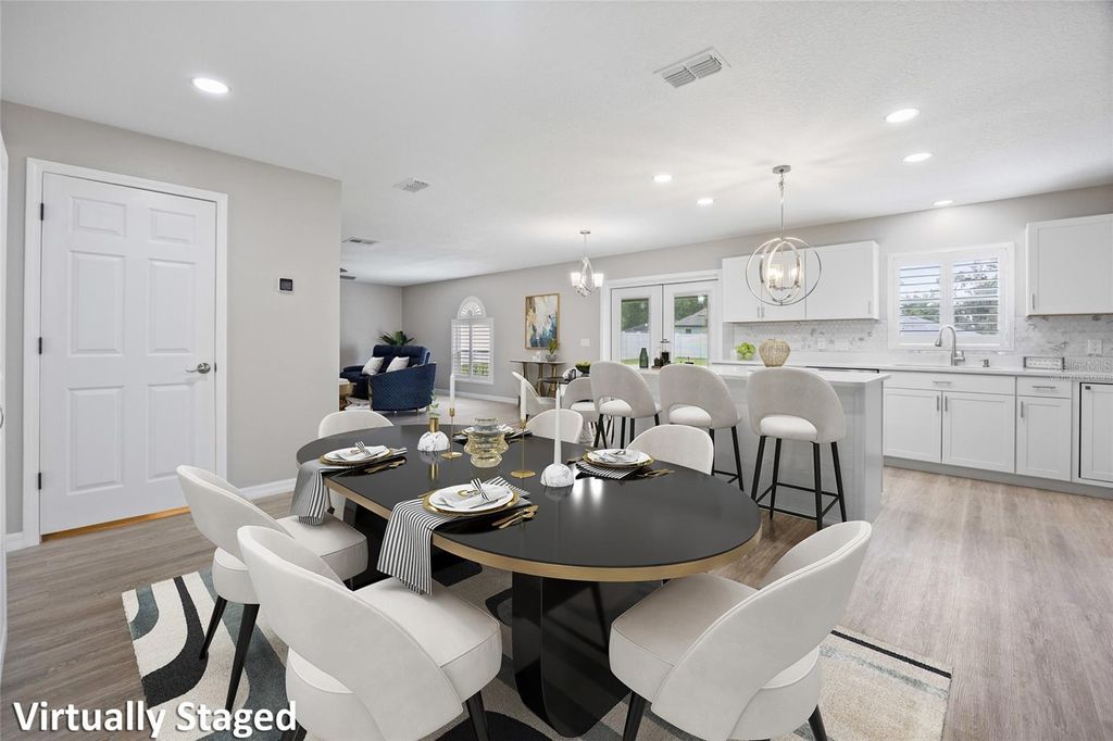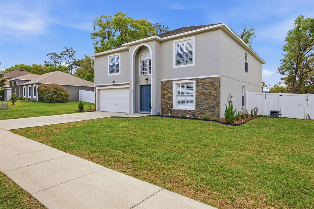 One or more photo(s) has been virtually staged. Move-in ready and sparkling with recent updates, this beautifully renovated 4-bedroom, 3.5-bath home in the gated community of Magnolia Pointe offers 3,010 sq ft of bright, open living designed for comfort and style. You will love the newer luxury vinyl plank flooring, plantation shutters on every window, updated lighting, and the refreshed kitchen featuring white shaker cabinetry, quartz countertops, stainless steel appliances, and a large island that anchors the space for entertaining. Upstairs, the impressive 17.5 x 20.5 primary suite includes a tray ceiling and a spa-inspired ensuite bath with dual sinks, an oversized walk-in shower with built-in seating, and a massive walk-through closet. All bedrooms are upstairs, plus a convenient half bath on the main level. Enjoy a screened patio overlooking an expansive vinyl privacy-fenced backyard, plus a 2-car garage with epoxy flooring. Two HVAC systems serve the home, with one replaced in 2021. City of Ocala public water and sewer. HOA maintains the gated entry and common areas. Convenient to schools, shopping, dining, and major highways. 4510 SE 31st Pl, Ocala. Schedule your private tour today.