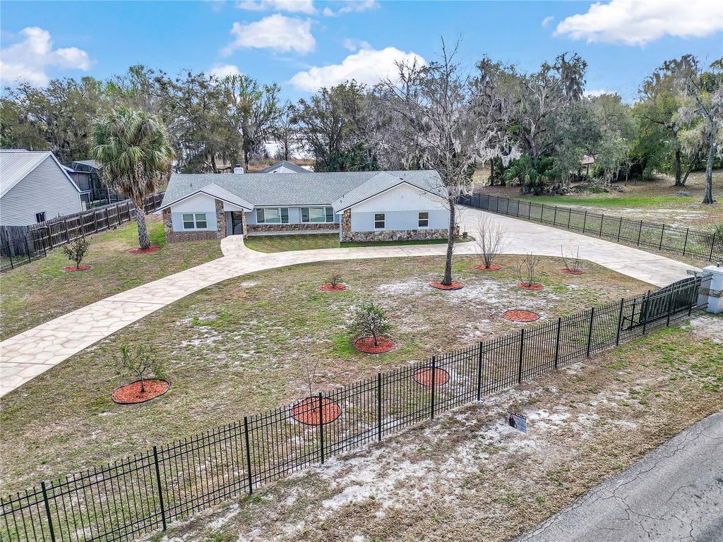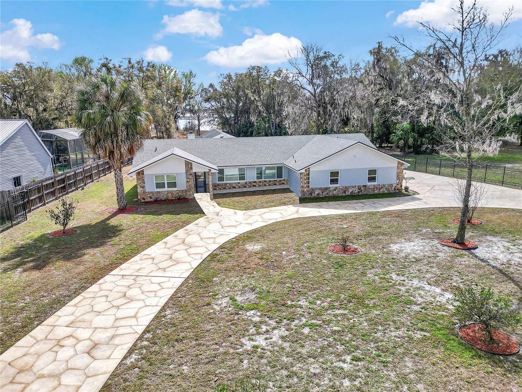 Completely Updated Saltwater Pool Home on the Tsala Apopka Chain of Lakes!!! Welcome to your dream retreat"”an exquisitely updated saltwater pool home nestled on just under an acre of fully fenced, gated property along the stunning Tsala Apopka chain of lakes. Property boasts 3 bedrooms, 3 bathrooms and over 2700 square feet of living space. This beautiful home blends modern upgrades with timeless charm, offering both privacy and waterfront living at its finest. Step inside to an inviting open floor plan featuring luxury vinyl plank flooring throughout, warm wood-beamed ceilings and a cozy fireplace that sets the perfect tone for relaxed Florida living. Abundant windows with plantation shutters fill the home with natural light and frame tranquil views of the surrounding landscape. The chef's kitchen is truly the heart of the home"”showcasing solid wood cabinetry, granite countertops, double built-in ovens, a farmhouse-style sink, along with a center island with cooktop and pot filler. Whether you're entertaining or preparing everyday meals, this kitchen is designed to impress. The spacious primary suite offers a peaceful escape with its en-suite bathroom, walk-in closet, and a custom built-in dresser with TV space for added convenience and style. A split bedroom layout provides two generously sized guest rooms"”ideal for visitors, family or a home office setup. The sun room and extra dining area overlook the sparkling saltwater pool and have incredible lake views, creating seamless indoor-outdoor living and perfect flow for gatherings. Outdoors, enjoy the Florida lifestyle with plenty of room to roam, play or relax. This acre property is adorned with two orange trees, a lemon tree, a banana tree, two fig trees, a peach tree and an Argentina grape tree! With nearly an acre of land, a secure gated entry, and access to the iconic Tsala Apopka lakes, this home delivers a rare combination of comfort, luxury and adventure! Property is less than 5 minutes from historic downtown Inverness Liberty Park, nature trails, farmer's markets, resaurants, medical offices & MORE!