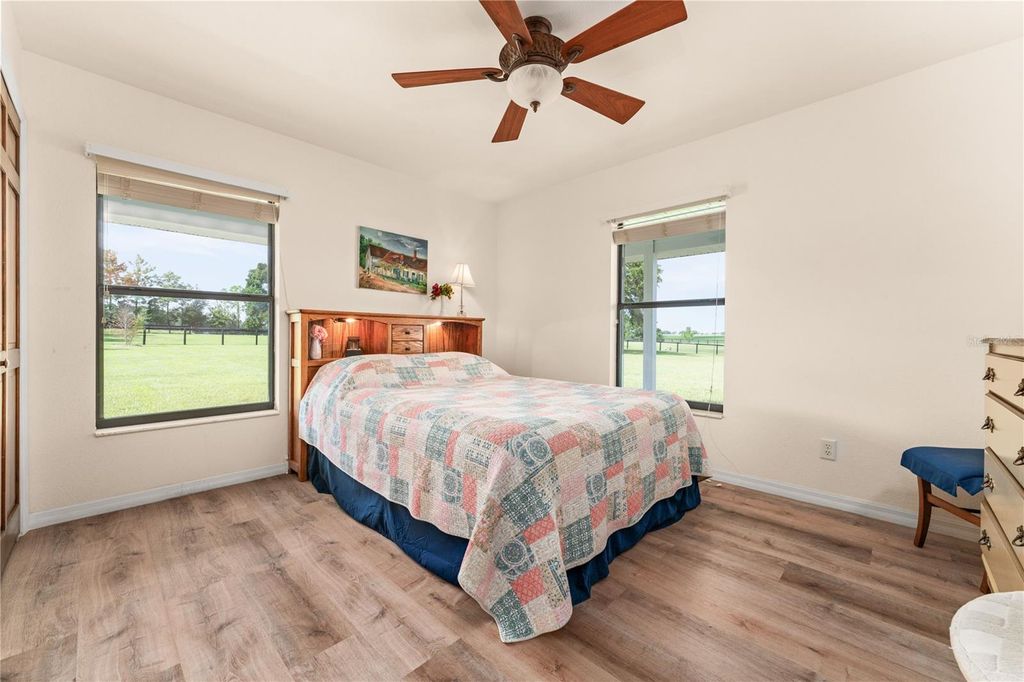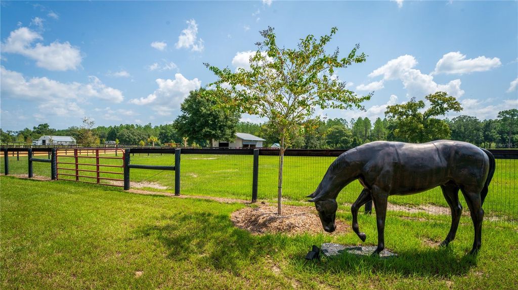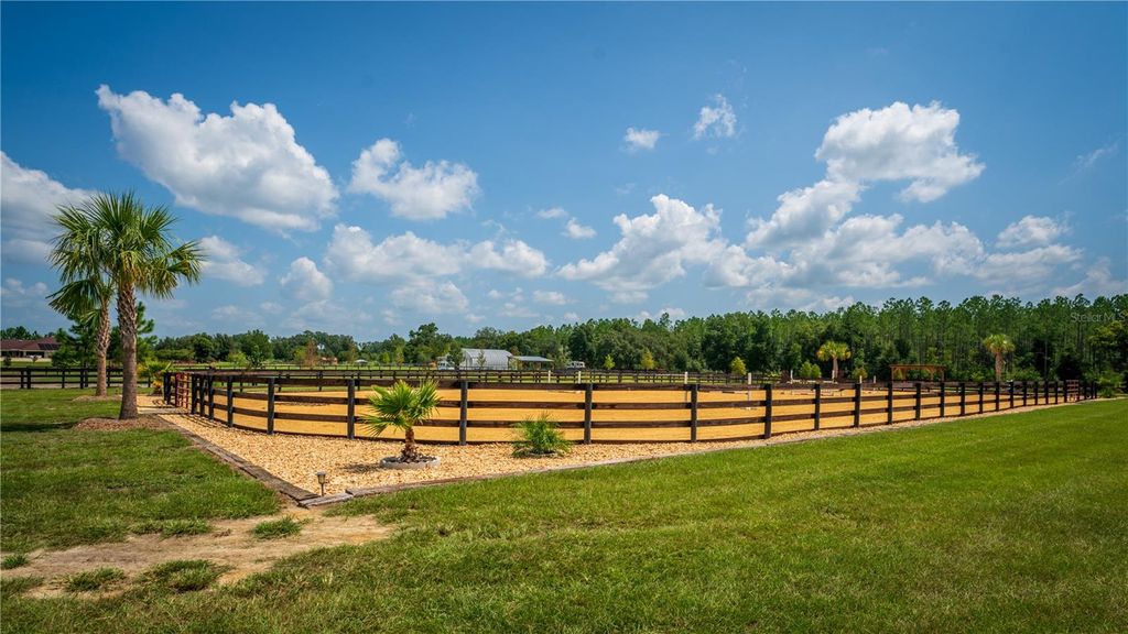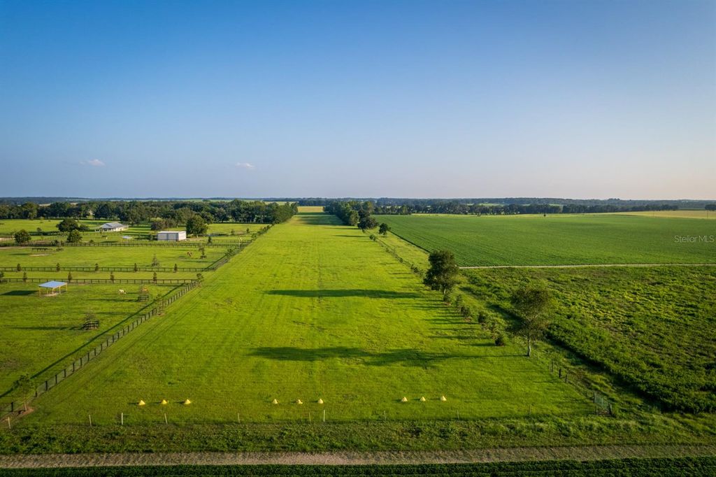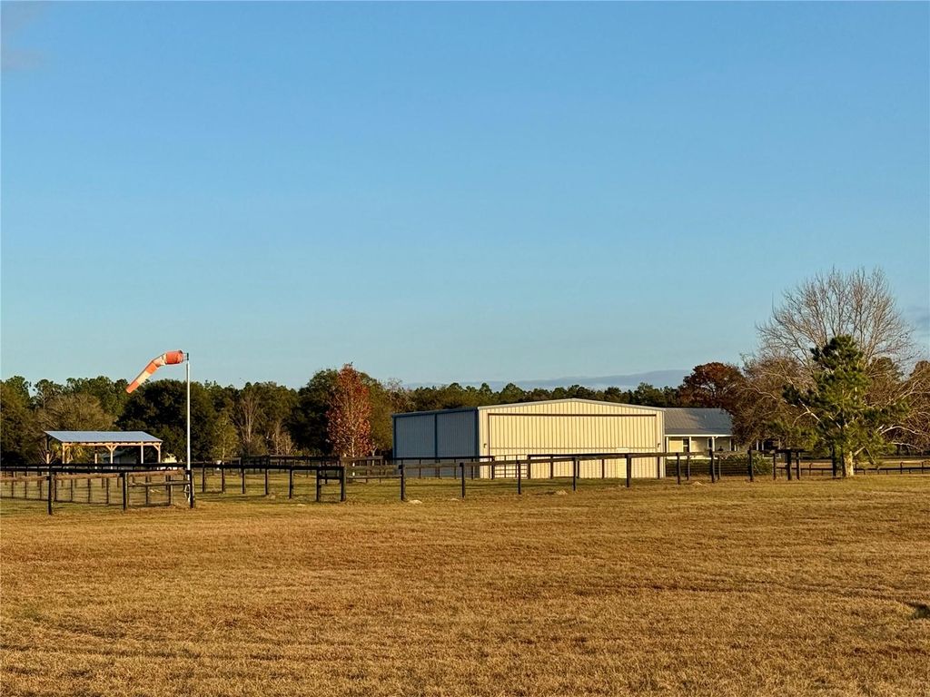 Fly & Ride Retreat "” Tucked away from the main road, this pristine and peaceful 19-acre farm is surrounded by hundreds of acres of woods and open fields, offering unmatched privacy and natural beauty. A true haven for animal lovers and aviation enthusiasts alike, with no HOA restrictions. The charming custom-built concrete home is thoughtfully maintained and features 3 bedrooms, 2 bathrooms, a bonus attic room, and a welcoming wraparound porch"”perfect for enjoying the serene surroundings. Equestrian facilities include a well-appointed horse barn with two spacious stalls, two additional outdoor stalls, a tack room, hay room, and a full bathroom. Ride or train in the impressive 200 x 150 ft sand/clay arena overlooking a picturesque pond, while a gazebo provides the perfect spot to take in stunning sunrises and sunsets. The property is fully enclosed with durable Cryoboard fencing and includes three expansive paddocks equipped with automatic waterers for horses and livestock. For aviation and hobby enthusiasts, the insulated airplane hangar offers versatile space for aircraft, car collections, farm equipment, or recreational vehicles"”complete with a dedicated "man cave" overlooking the impressive 2,700 x 250 ft private grass runway. Additional highlights include two ponds, majestic old oak trees, and over 60 newly planted trees enhancing the landscape. All utilities are underground for a clean, unobstructed setting, and the property is designed for easy maintenance. Ideally located just 15 minutes from HITS in Williston and 30 minutes from WEC and Ocala, this exceptional property blends rural charm, equestrian excellence, and private aviation into one extraordinary offering.