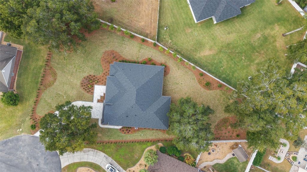 Welcome to this beautiful new construction home in The Hunt Club, a gated community with a very convenient location. This thoughtfully designed 4 bedroom, 3 bath residence has a 2 car garage and features an open concept layout, perfect for everyday living and easy entertaining. As you step through the foyer, a versatile study/den sits to your left, an ideal space for a home office, playroom, or even a 4th bedroom depending on your needs. Just beyond, the home opens to a bright family room that flows seamlessly into the dining area and stunning kitchen. Here, a large center island, quartz countertops and modern finishes set the tone for gathering with friends and family. The split bedroom plan offers comfort and privacy for everyone. One guest bedroom has its own private bath, while the other bedroom shares a full bath just steps away. The primary suite is a true retreat, complete with two large walk-in closets and a gorgeous modern bathroom featuring a glass-enclosed shower, double vanity and a freestanding soaking tub. Sliding doors from the family room lead to a covered patio with pavers and a spacious backyard. There's plenty of room for a future pool, outdoor kitchen with lots of space to relax outdoors. Located close to shopping, medical facilities, I-75, and just a short drive from the World Equestrian Center, this home combines convenience with a peaceful community setting. Come take a look, you'll love the layout, finishes and the benefits that come with owning a brand-new home.