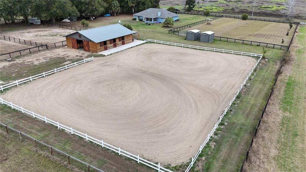 Where country living meets elite equestrian wellness "” a truly one-of-a-kind horse property designed for performance, comfort, and care. Nestled on 9.34 high-and-dry acres, this exceptional equestrian estate offers a rare combination of modern country living and state-of-the-art horse wellness amenities. Built in 2006, the beautifully maintained 3-bedroom, 2-bathroom single-story home features 2,372 sq ft of living space and blends comfort, functionality, and timeless style "” all thoughtfully positioned within a fully equipped horse facility created with the animal's well-being as the highest priority. Inside the home, you'll find an inviting open layout with cathedral ceilings, a cozy family room fireplace, and a seamless kitchen/family room combination ideal for everyday living and entertaining. The spacious Master Bedroom includes a walk-in closet. The roof was replaced in 2023, and the air-conditioning system was replaced in September 2024, offering peace of mind for years to come. Step outside and discover what truly sets this property apart. This farm has been meticulously designed as a premium equine wellness retreat, offering features rarely found anywhere else: Equine Therapy & Wellness Facilities "¢ Climate-controlled full-body infrared therapy room featuring 7 adjustable wavelengths for targeted or full-body treatment "¢ Infrared panels can be removed, allowing the space to be converted into a climate-controlled tack room or grooming area "¢ Climate-controlled Himalayan salt therapy room, lined with authentic salt bricks to support respiratory health and skin condition "¢ Both wellness rooms are suitable for horses, dogs, and even human use Professional Equestrian Infrastructure "¢ Barn with 6 Saratoga stalls, fans, grooming area, wash rack, and tack room "¢ hay storage barn "¢ Excellent barn ventilation for optimal airflow and horse comfort "¢ Integrated misting system to cool horses during hot Florida summers "¢ Additional barn with 2 stalls with dutch doors equipped with a misting system "¢ Riding arena for training and exercise Thoughtful Horse-First Design "¢ Automatic waterers throughout pastures, dry lots, and barns "¢ Freeze-protected well, ensuring a reliable supply during colder weather "¢ Multiple pastures plus two spacious dry lots, ideal for horses requiring controlled grazing while still allowing freedom of movement "¢ Fenced grounds and carefully planned layout prioritizing safety and efficiency With an attached 2-car garage, well and septic utilities, and expansive usable acreage, this high-and-dry property offers privacy, functionality, and endless possibilities. Every detail of this estate was created for the horse. Whether you are a competitive rider seeking a training base or an owner caring for horses with special health needs, this extraordinary property delivers a level of equine comfort and innovation rarely available on the market. A truly unique opportunity "” properties like this simply do not exist twice.