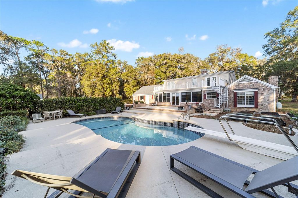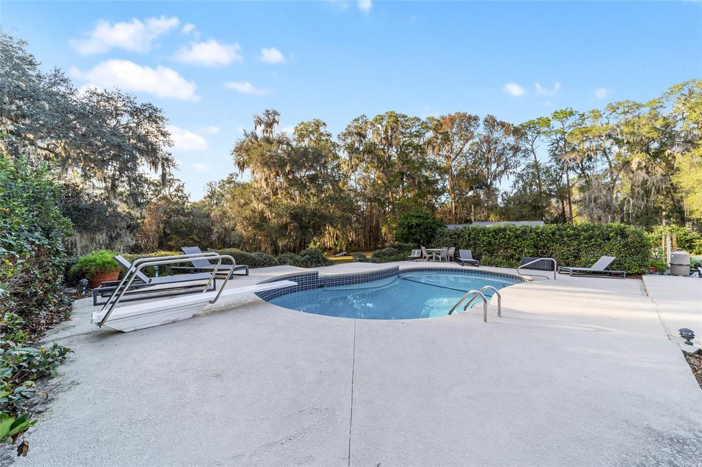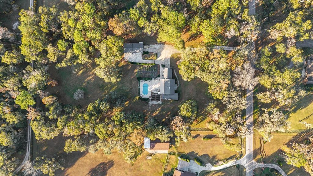 Nestled on a quiet stretch of Shady Road Ranches, this gated estate offers the perfect blend of privacy, beauty, and convenience. Set on just under 5 fully fenced acres, the property features professional landscaping, excellent curb appeal, and an owner-installed garden"”ideal for starting a farm-to-table lifestyle or hobby farm. The multi-story 3BR/2.5 bath pool home offers high ceilings, abundant natural light, and an open layout. The main living area features a cozy fireplace and flows seamlessly into the well-appointed kitchen with stainless steel appliances, ample cabinetry, tiled backsplash, under-cabinet lighting, center island, and pass-through window to the sunroom"”perfect for entertaining. The formal dining area includes beautiful built-in shelving. New Roof less than 2 years old, new AC in upstairs of main home. The first-floor primary suite is a private retreat with sitting area, fireplace, walk-in closet, and en-suite bath with dual vanities, soaking tub, and glass-enclosed shower. The air-conditioned sunroom includes a wet bar and entertainment space and opens through French doors to the expansive pool deck and sparkling in-ground pool. An upper balcony with exterior spiral staircase overlooks the pool and backyard. Upstairs bedrooms share a bath and provides direct access to the balcony. A private studio-style apartment with kitchen and full bath provides flexible space for guests, in-laws, or home office use. Located minutes from the Florida Horse Park and a short drive to Ocala shopping, dining, medical, and entertainment. A rare opportunity to enjoy peaceful country living with modern comfort and convenience.**