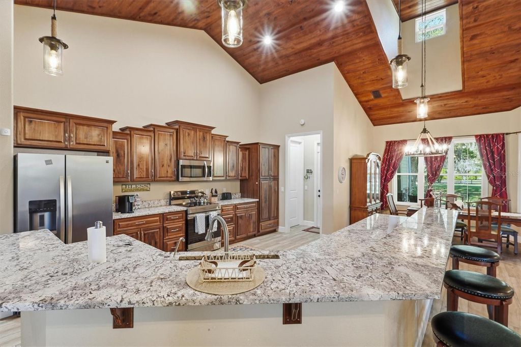 Beautifully maintained 3-bedroom, 2-bath pool home situated on 3 fully fenced acres in the heart of Ocala's Horse Country. Ideally located just 9 minutes from the World Equestrian Center and only 3 minutes from HITS, this property offers the perfect blend of privacy, convenience, and equestrian-friendly living. Surrounded by majestic oak trees and open pasture, the home features a comfortable and functional layout with modern amenities, a spacious kitchen, and inviting living areas ideal for everyday living or hosting guests. Master Bathroom is a beautiful spa with double sinks, Soaking Tub and Walk in shower. The stunning tongue and groove ceiling in the main living area adds warmth to the home. The chefs kitchen comes complete with stone counter tops and stainless steel appliances. Step outside to enjoy your own private pool, perfect for relaxing after a day at the shows, and a peaceful outdoor setting ideal for entertaining or unwinding. The property includes a barn and paddock, making it ideal for equestrian use or hobby farming. Ample parking is available for vehicles, trailers, and equipment, adding to the functionality of this exceptional property. Whether you are looking for a full-time residence, seasonal escape, or investment opportunity in Ocala's highly desirable equestrian corridor, this charming property delivers comfort, functionality, and an unbeatable location.