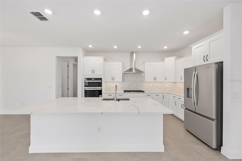 Welcome to this stunning new construction Ariana model in the desirable LongLeaf Ridge community at On Top of the World. This home features 2 bedrooms, 2 bathrooms, and a versatile flex room with French doors. The open-concept floor plan flows seamlessly with tile flooring throughout and a modern kitchen boasting stainless steel appliances, built-in oven and microwave, center island, and quartz countertops. The spacious master suite offers an en suite bathroom with double vanity, zero-entry tiled walk-in shower, and a walk-in closet. Step through the sliding glass door to a screened lanai and enjoy the indoor-outdoor living. This home combines modern style, functionality, and comfort in an active-adult community with resort-style amenities. Call for your private showing today!
