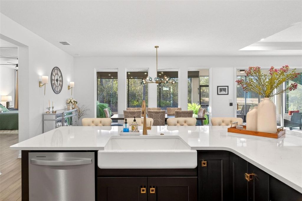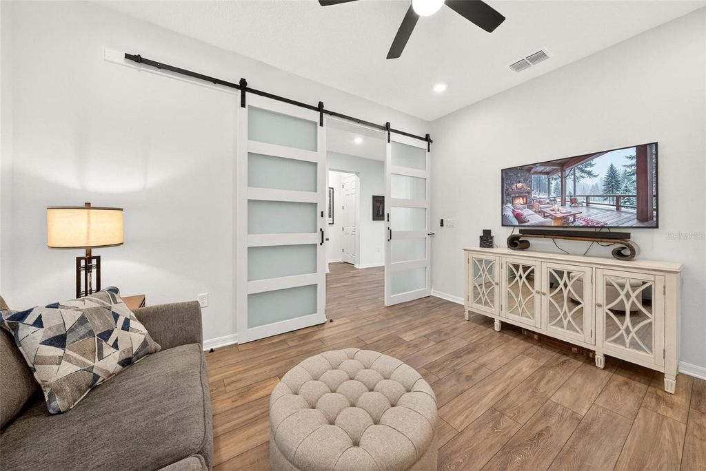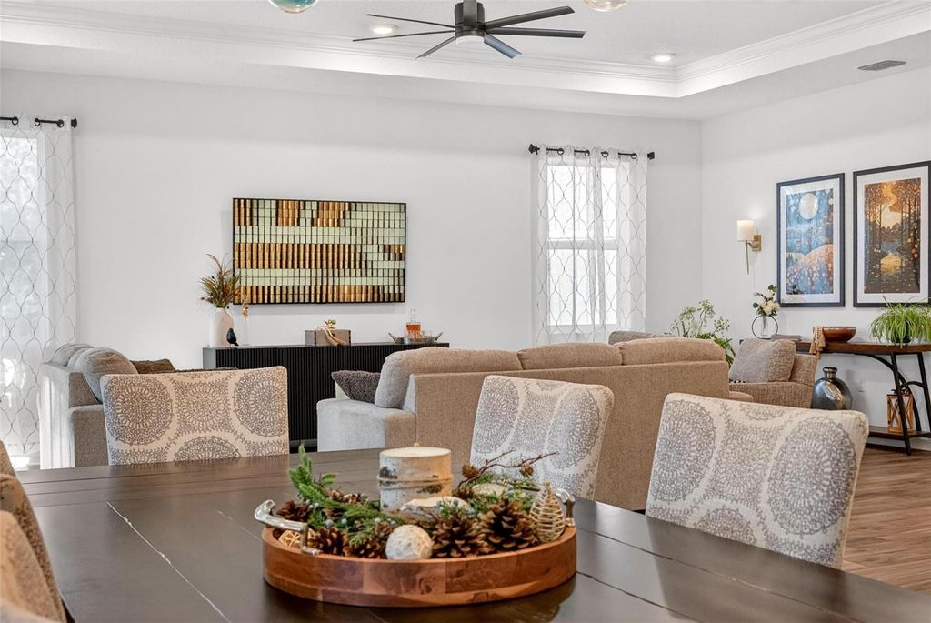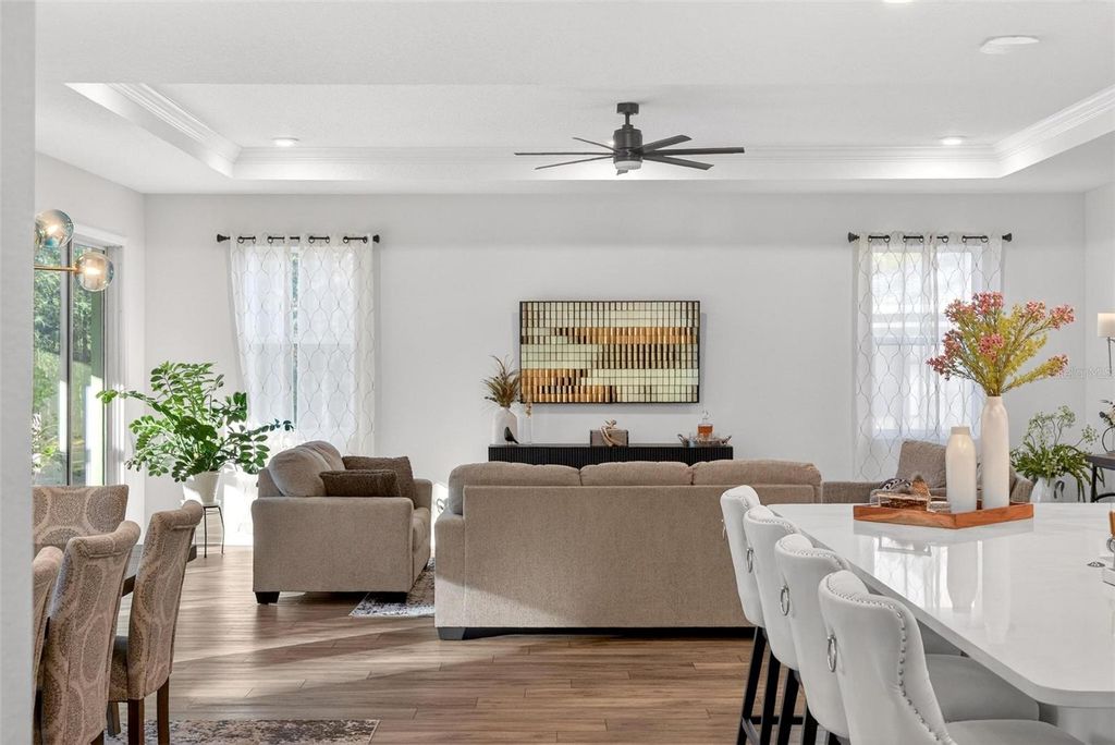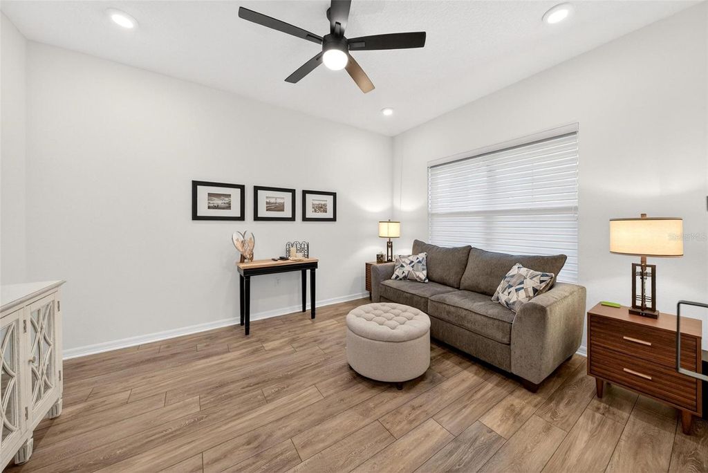 Set on a rare .32-acre privacy lot backing to a tranquil wooded preserve, this gently lived-in Magnolia model offers a peaceful retreat in On Top of the World's desirable Longleaf Ridge, where privacy and community come together. Inside, expansive rear windows fill the home with natural light while framing serene, wooded views, creating a seamless connection to the outdoors and an ideal setting for birdwatching. The thoughtfully designed floor plan includes a primary suite with en-suite bath, a guest bedroom with a private bath, a den well-suited for a home office or quiet sitting room, an additional flex space ideal for hobbies or reading, and a convenient half bath for guests. The light and bright kitchen features quartz countertops with a coordinating backsplash, two-tone and soft close cabinetry with dedicated spice storage, stainless steel appliances, under-cabinet lighting, and a walk-in pantry. Luxury vinyl plank flooring flows throughout the home, complemented by a tray ceiling in the living room, ceiling fans, and a whole-home water softener system. Step outside to an extended patio overlooking the preserve, perfect for relaxing and enjoying the peaceful surroundings. The expanded garage includes a full two-car garage plus a separate golf cart bay, along with a built-in workbench and additional storage. Residents enjoy an unmatched lifestyle with golf-cart access to shopping, dining, swimming, clubs, pickleball, mini golf, dog parks, and more. This private, move-in-ready home offers an ideal blend of comfort, flexibility, and setting in one of Ocala's most sought-after communities. Schedule your private tour today!
